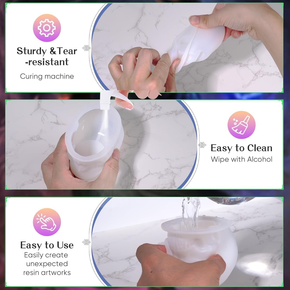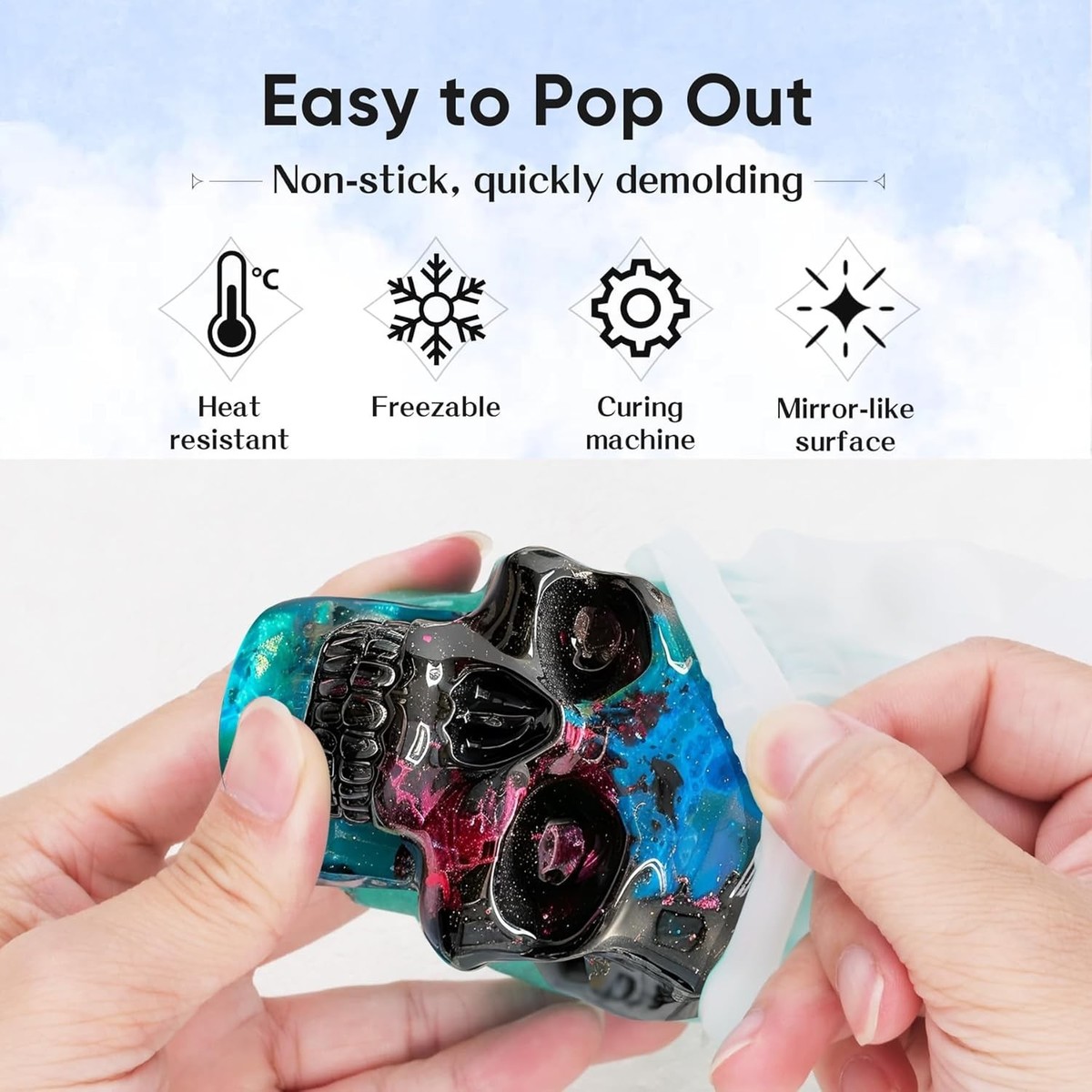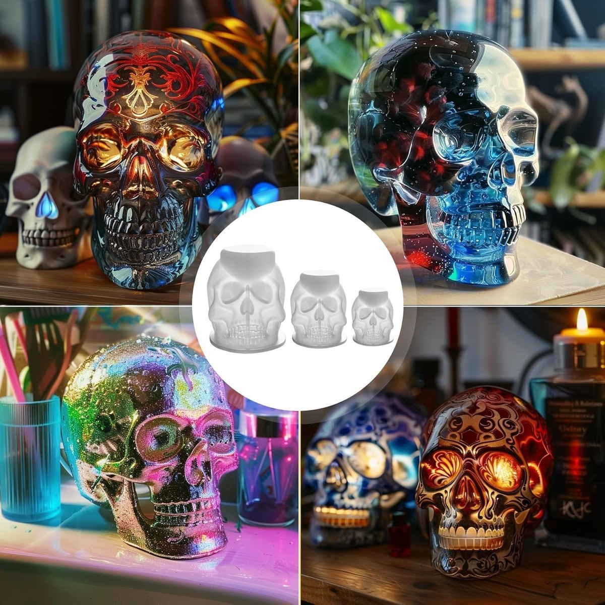 - 3D Resin Skull Molds, Flexible Clear Silicone Head Molds - 3 Pack White