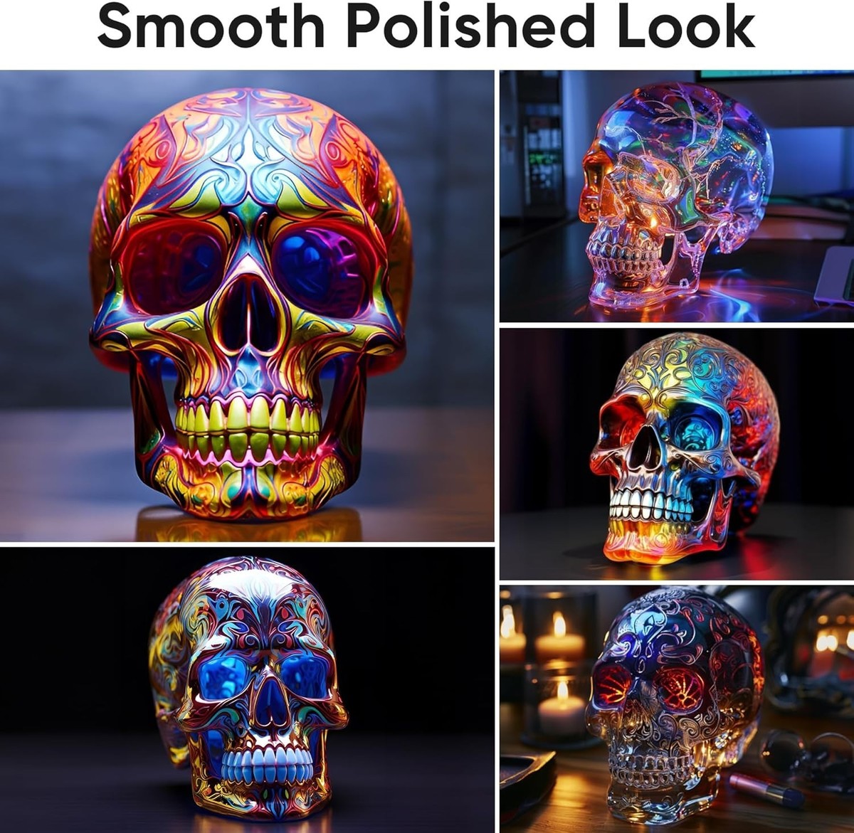 During DIY silicone skull mold, you can add different fillers like glitter, dried flowers, mica powder or any element you like as decoration. The finished 3D Skull Resin has shiny glossy surface, great handmade Halloween/Christmas gifts/Birthday gifts for your family/friends.