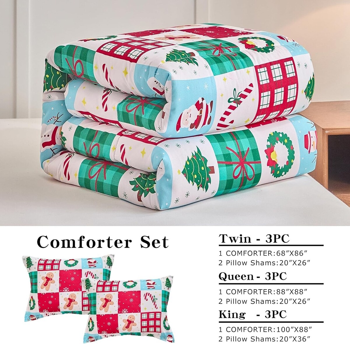 - 3pcs Christmas Comforter Set Queen Size, Xmass and Santa Queen- 88"x88" Wreath