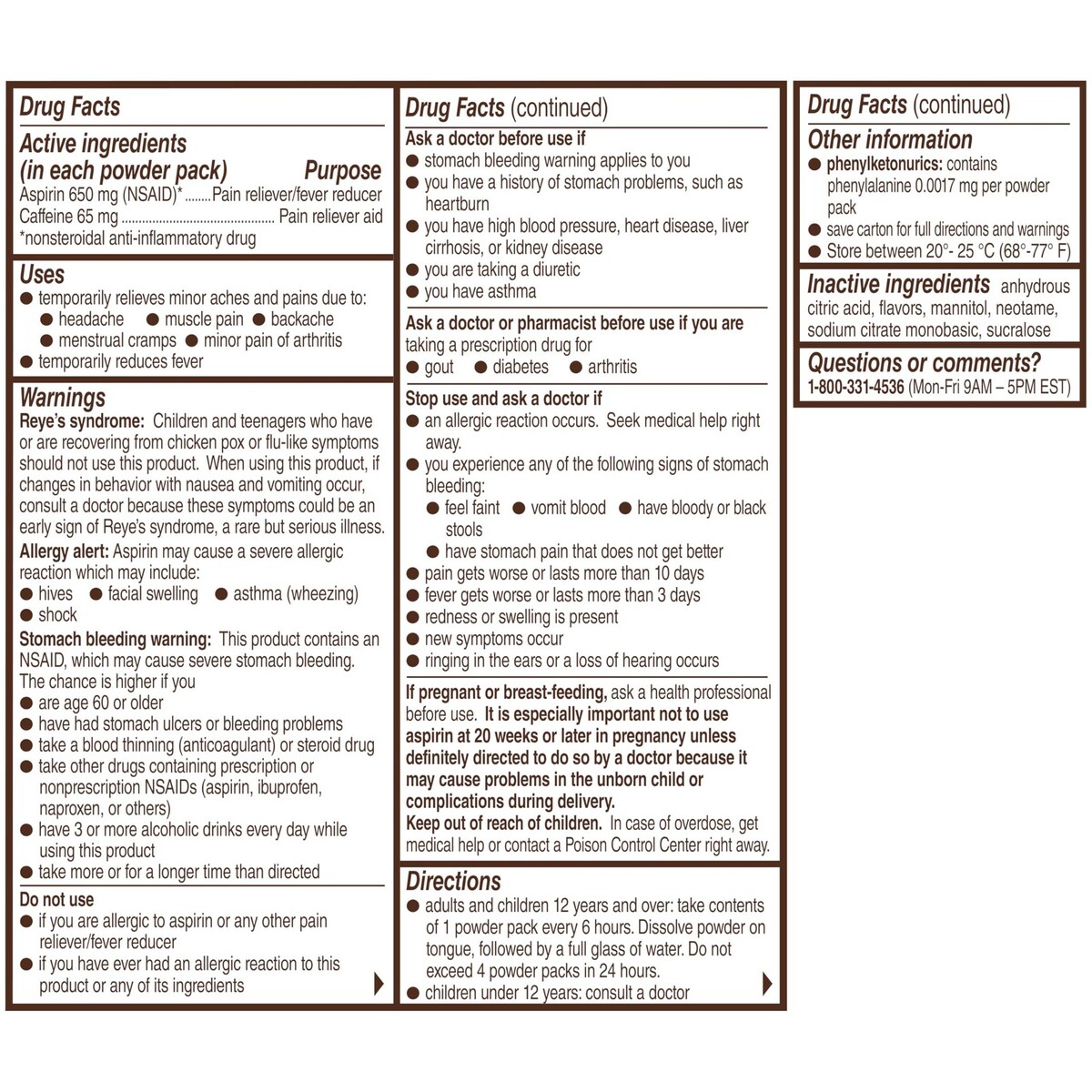 Primary image for 3x Bayer New Rapid Dissolvable Raspberry Flavor Powder Packs with Aspirin & Caff