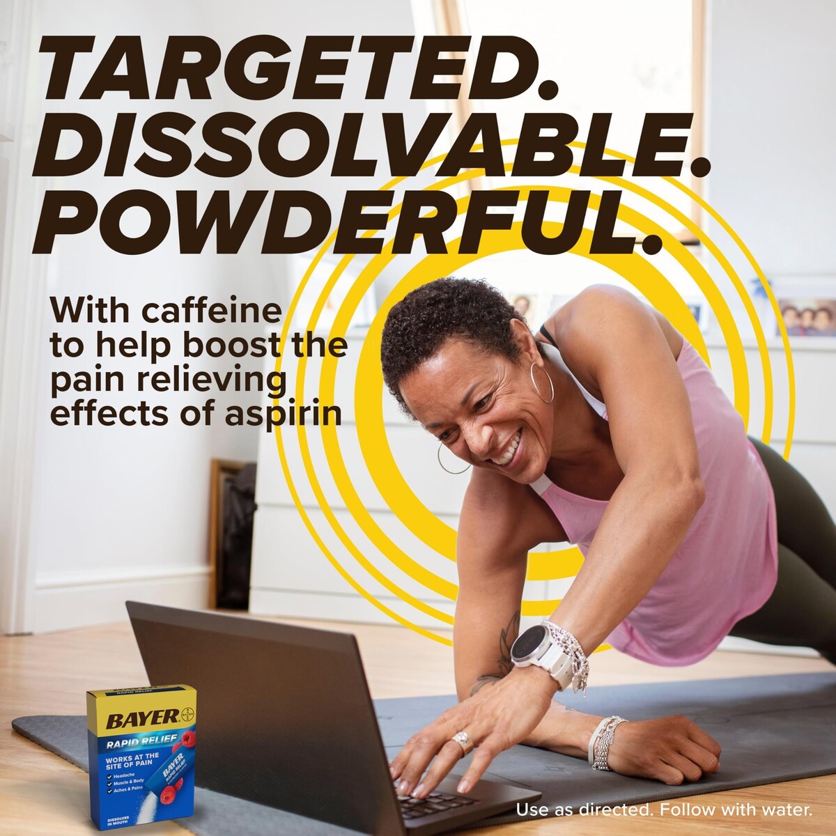 3x Bayer New Rapid Dissolvable Raspberry Flavor Powder Packs with Aspirin & Caff
