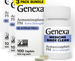 3 Boxes each having 100 caplets. 300 caplets in total Expiration Date of 12/2025 ? Pain Relief Sleep Aid: Genexa Acetaminophen PM Extra Strength is a dual-action formula providing effective pain relief from headaches, backaches and more ? plus a sleep aid that promotes a restful night's sleep. For adults and children aged 12+. ? Effective, Non-Habit Forming Formula: Genexa PM Extra Strength combines 500 mg acetaminophen and 25 mg diphenhydramine HCl to relieve minor aches and pains while supporting a restful night?s sleep. This is non-habit forming when used as directed. ? Simple, Clean Formulation: The Acetaminophen 500mg Extra Strength, like all Genexa products, is free from artificial preservatives, dyes, and common allergens, providing a clean over-the-counter medicine delivering effective pain and fever relief. ? Easy to Swallow Caplets: These extra strength pain relief sleep aid caplets feature a smooth coating and streamlined design for comfortable, hassle-free dosing. Formulated for use by adults as well as kids aged 12+ ? for a clean, effective relief. ? About Genexa: Founded by parents and doctors, Genexa is committed to making clean, effective medicine for the whole family. Our over-the-counter products use the same trusted ingredients with non-GMO, preservative-free formulas. Medicine made clean.