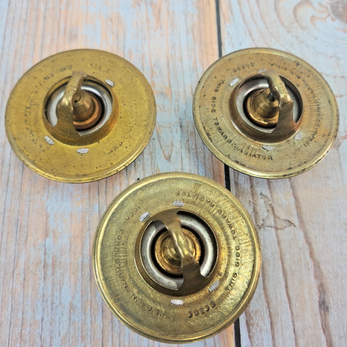The product is a set of three Vintage Liberty 30238 thermostats suitable for 1953-66 Buick and 1942-1966 Cadillac vehicles. With a diameter of 2.5 inches and an opening temperature of 180 F, these bolt-on thermostats are made of copper and are 100% leak tested. Manufactured in the United States, they come with a California Prop 65 Warning for cancer and reproductive harm. These thermostats are a perfect fit for classic car enthusiasts looking for reliable and high-quality engine cooling components with a vintage touch.