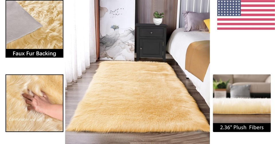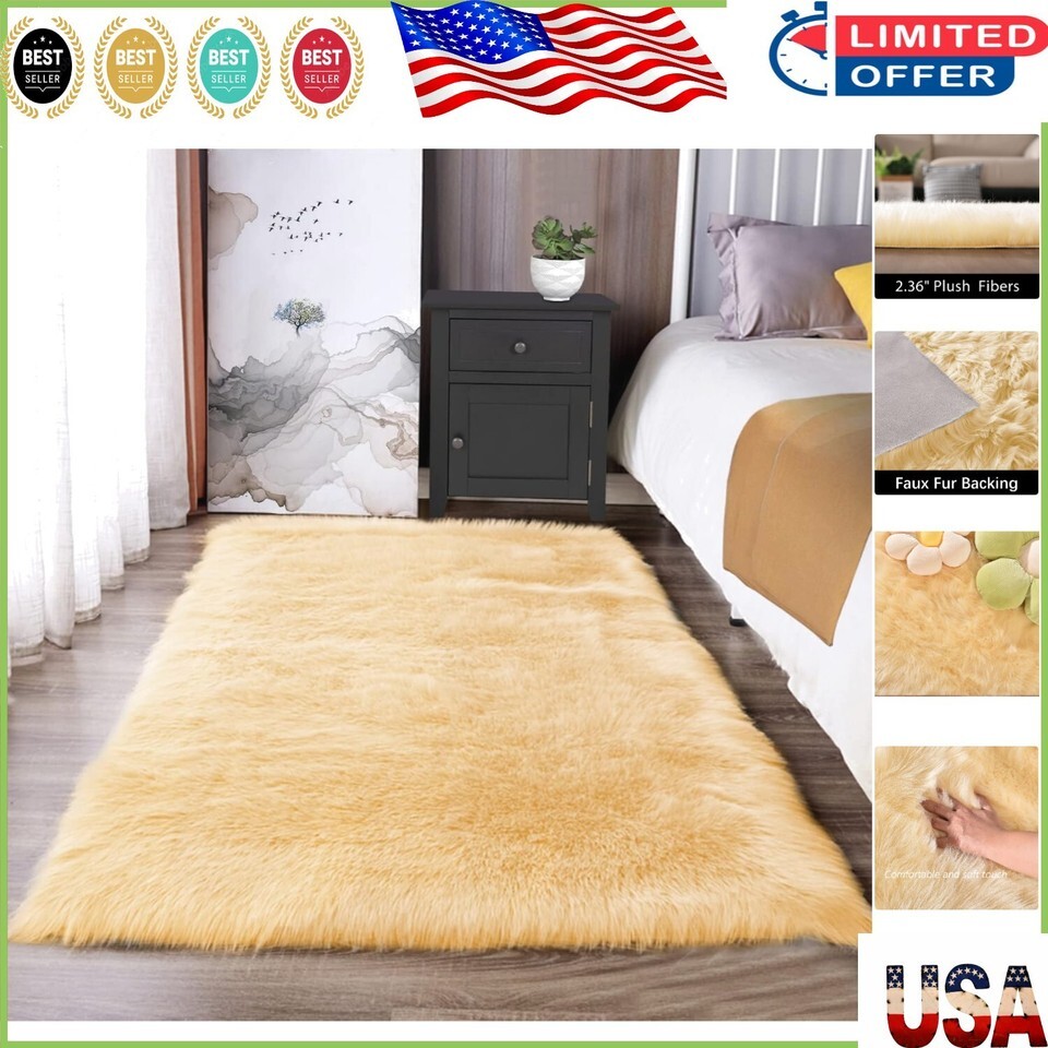 3x4 Ft Soft and Washable Yellow Fur Rug - Perfect for Bedrooms and Living Rooms