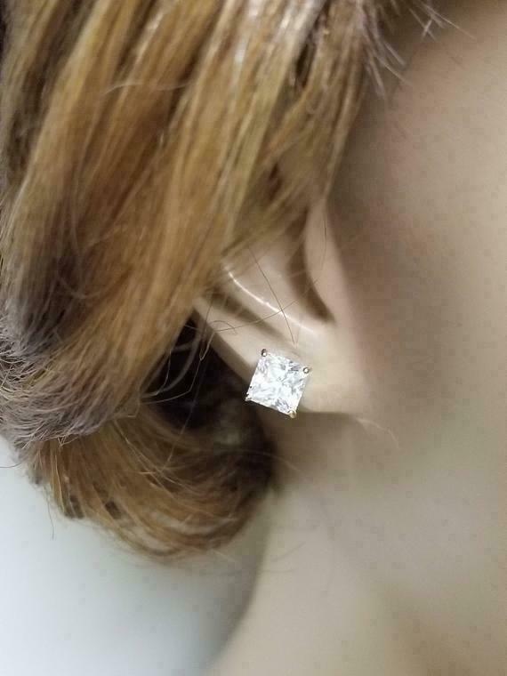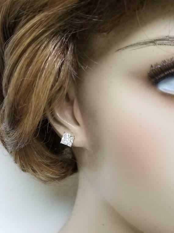4.00 Ct Princess-Cut Beautiful Stud Earrings 10K Yellow Gold Plated