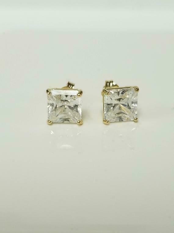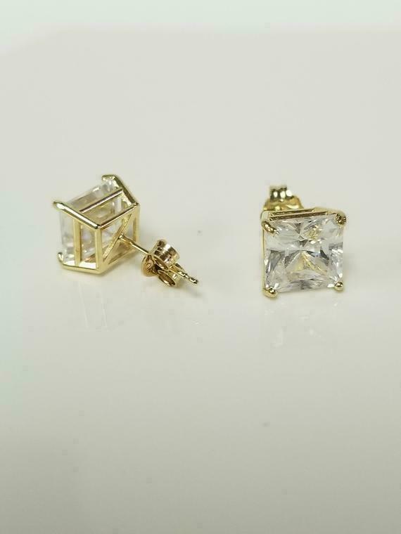 - 4.00 Ct Princess-Cut Beautiful Stud Earrings 10K Yellow Gold Plated