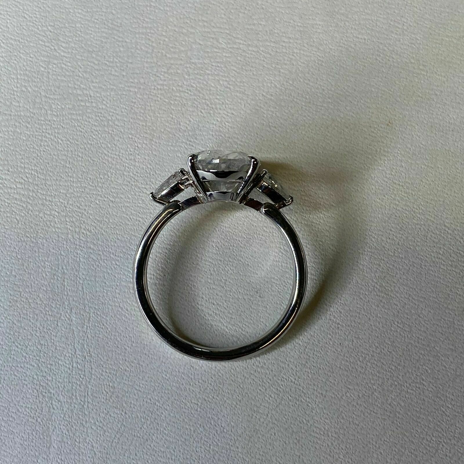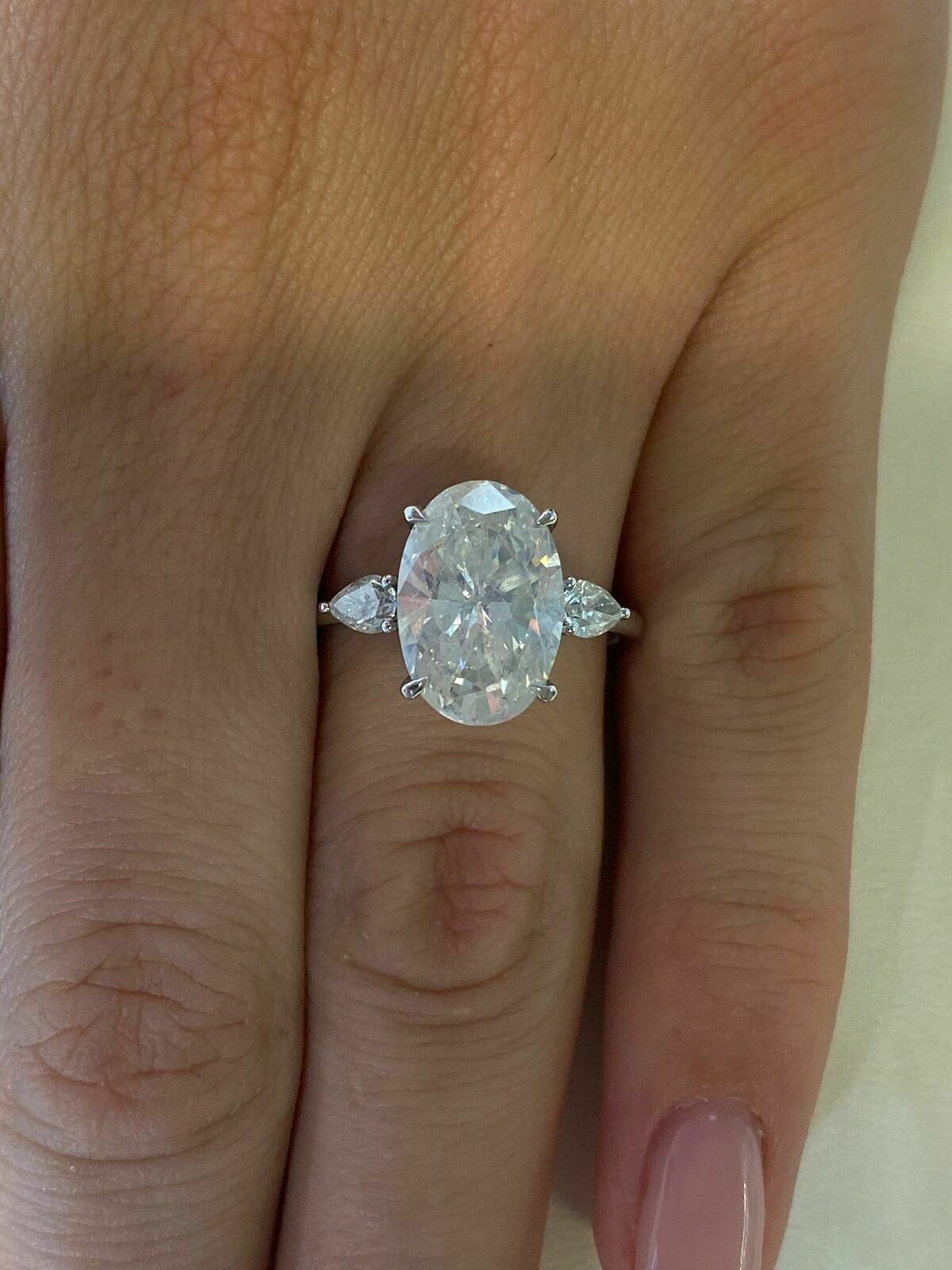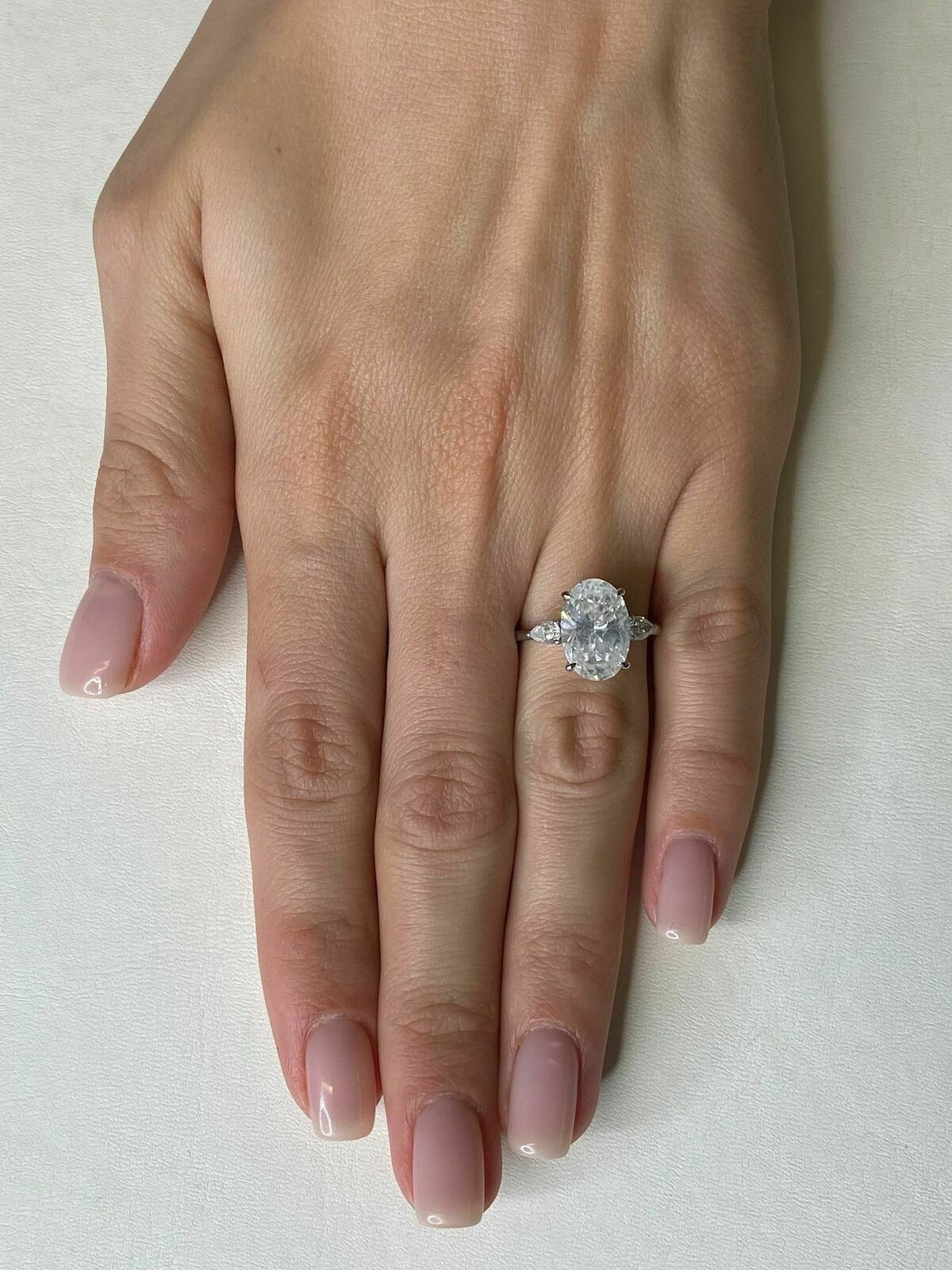 - 4.51 ct D/VS2 Oval Cut Three-Stone Diamond Engagement Ring 14K White Gold Over