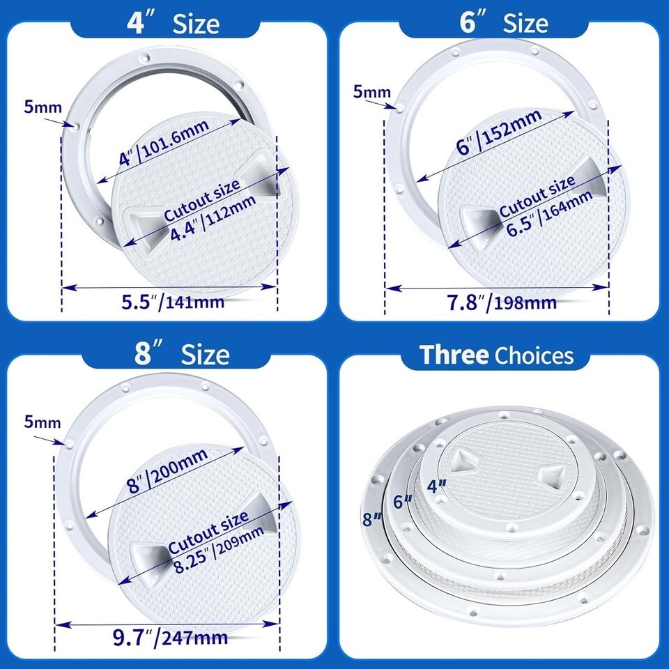 4" 6" 8" Round Non-Slip Marine Access Hatch for Boats Yachts - ABS