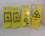 4 Assorted Caution WET FLOOR Signs Height of 24" to 26.5" 'A' Style No Tip Size: 24" to 26.5" Color: Safety Yellow Condition: Pre-owned Defects: alittle dirty Thank You for looking at my Store. I am a United States Army Veteran and our Store is Veteran Owned and we count on an honest transaction. We have a no hassle return Policy. It?s really simple if you don?t like it please return the item and I will issue you a refund. I have quickly learned that Customer Satisfaction is the number one Priority. My Store is open for Business and I invite everyone to take a quick look at what I have...Just click here and see all that I have http://stores.ebay.com/allamericanauctions2015 . We now ship every day to include SATURDAY AND SUNDAY? which means our carrier service now picks up 7 Days a week. If you BUY TODAY? your ITEM will get out no later than 72 hours after your purchase. It will have the best head start as it will be processed at the Denver Hub within 72 Hours of your purchase. Even if you buy at night your Item will be processed the next two mornings and will be at the Denver Hub WITHIN 72 HOURS. We have Incredible FAST SHIPPING and again WE NOW SHIP ON SATURDAY AND SUNDAY. If you have any questions please MESSAGE ME... If you have any CONCERNS please MESSAGE ME. If you have any ISSUES with your Item please let me fix it. I count on your Business and in return I will give you an Honest Auction. I look forward to doing Business with you. View more great items