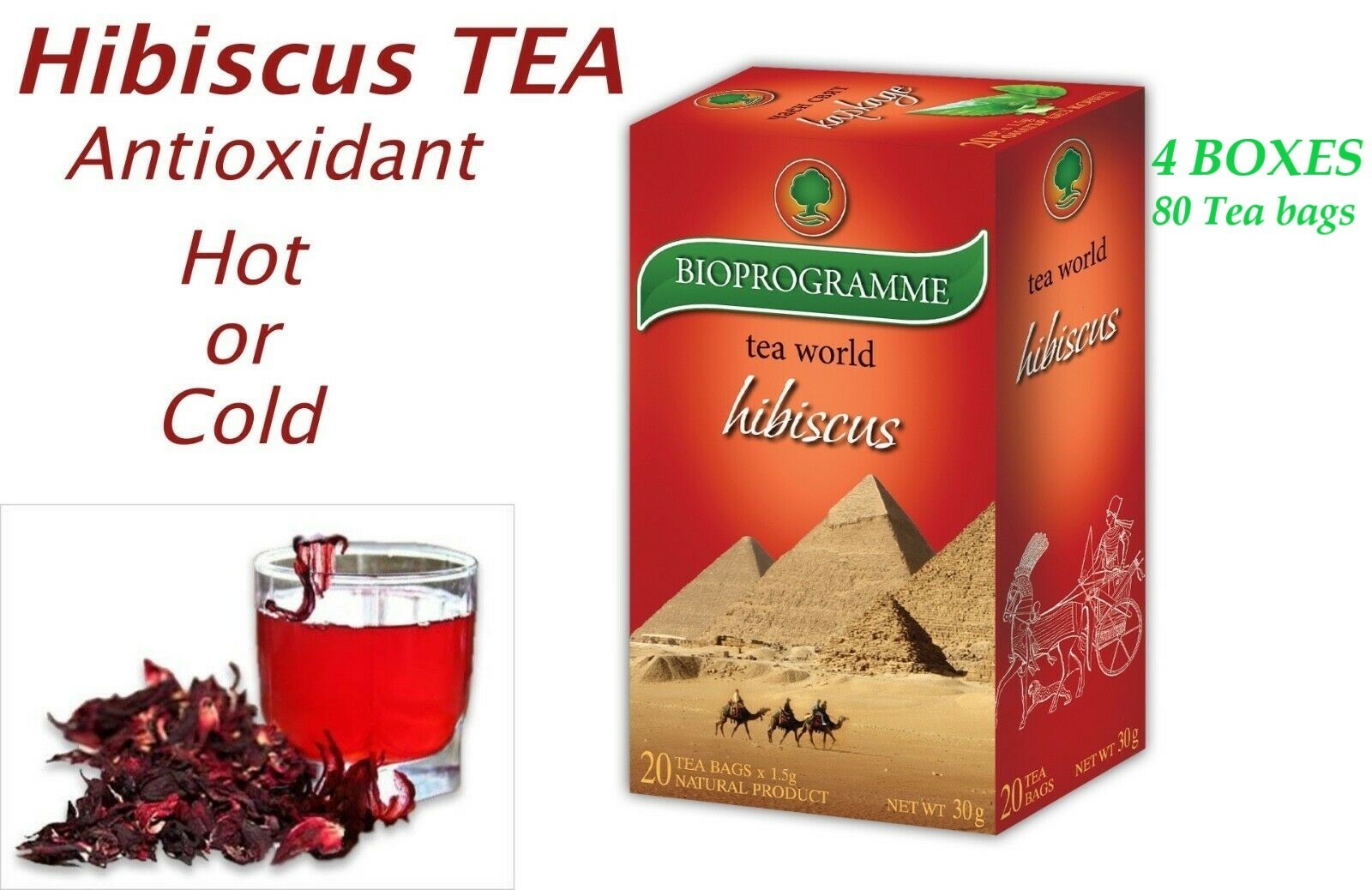 4 Boxes 100% Natural Hibiscus Tea 20 tea bags X 1.5gr Diuresis Blood Pressure