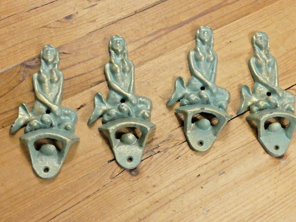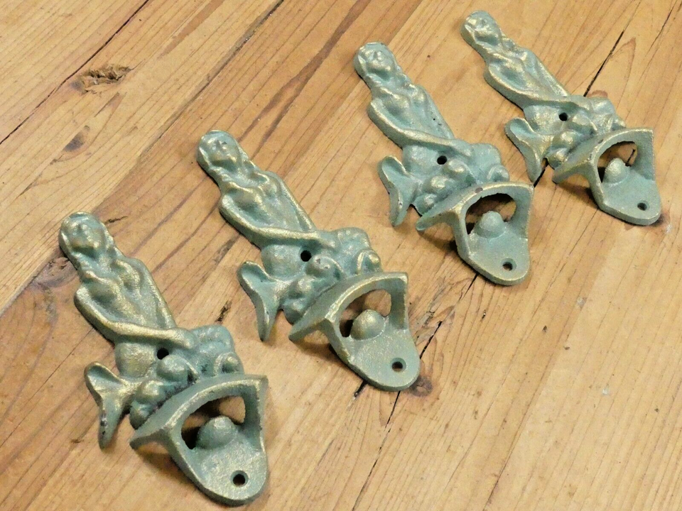 Primary image for 4 Cast Iron Wall Mounted Mermaid Bottle Openers Bar Beer Resell *PAINT CHIPPED