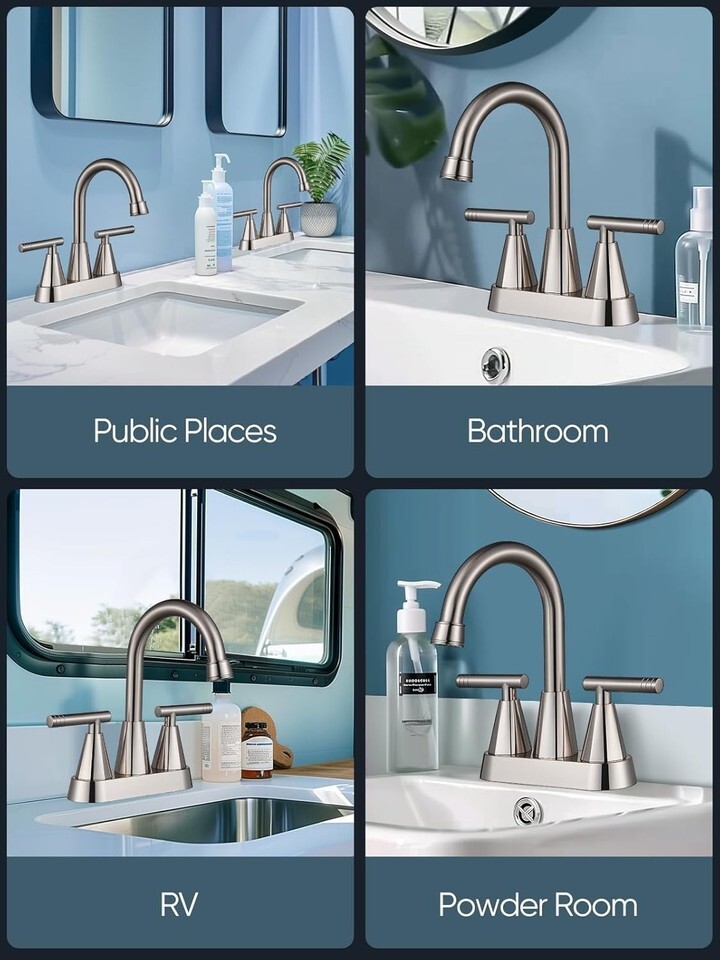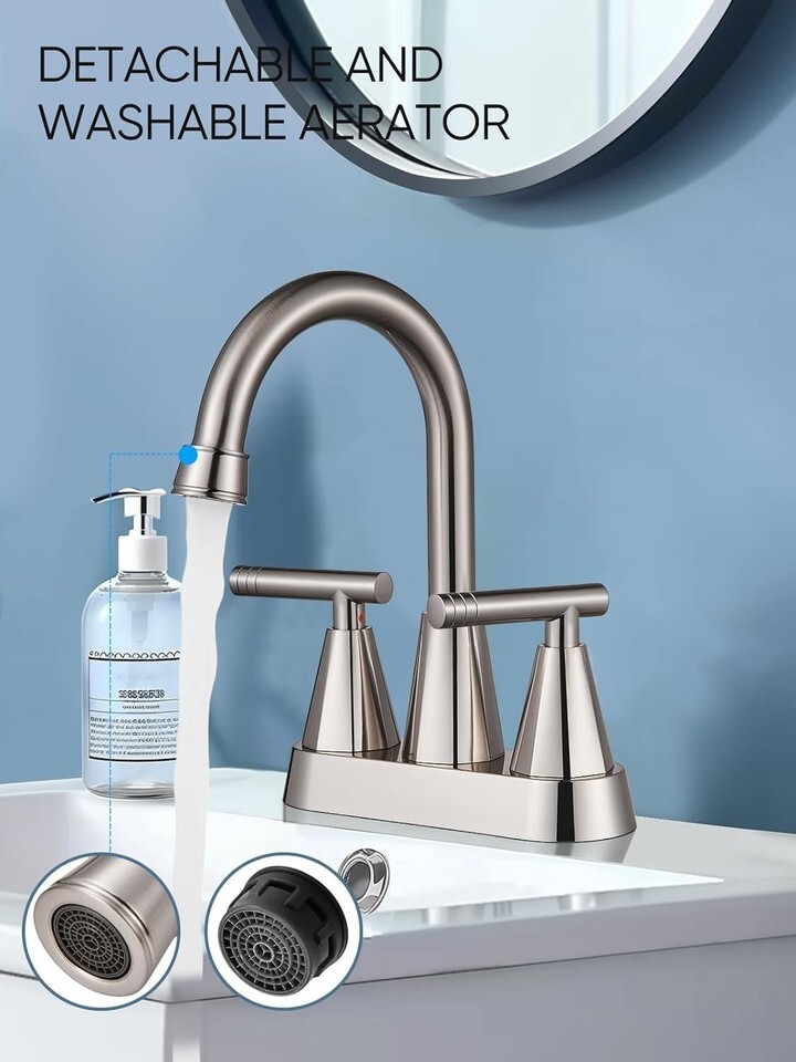 Upgrade your bathroom with our 4-Inch Centerset Bathroom Faucet, meticulously designed for both style and functionality. The 360-degree swivel spout allows for extensive and versatility, ensuring that cleaning your sink is as effortless as it is efficient. Made from lead-free stainless steel and adorned with a brushed nickel finish, it is built to withstand the of time while making a stylish statement in your home.