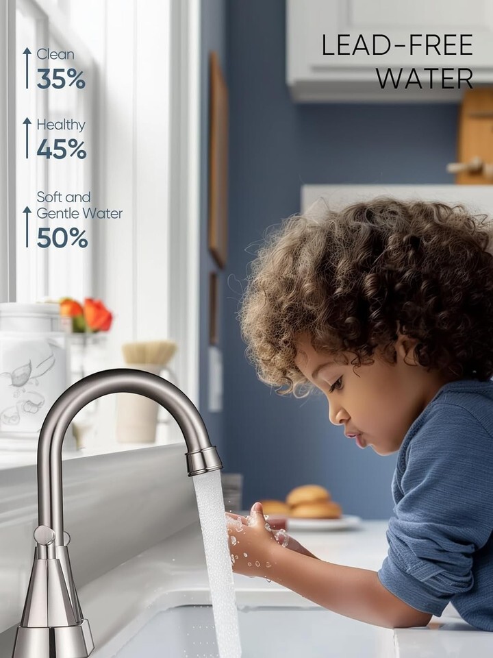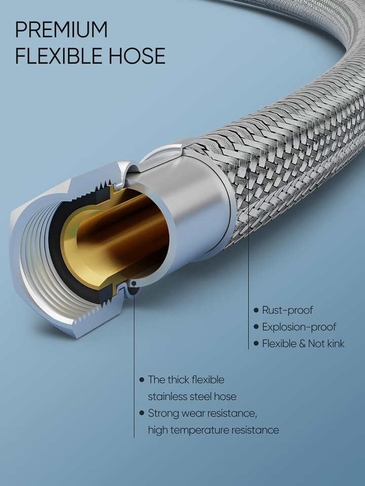 Robust Construction: Built with a lead-free 304 stainless steel hose encased in a braided supply line for durability and safety.