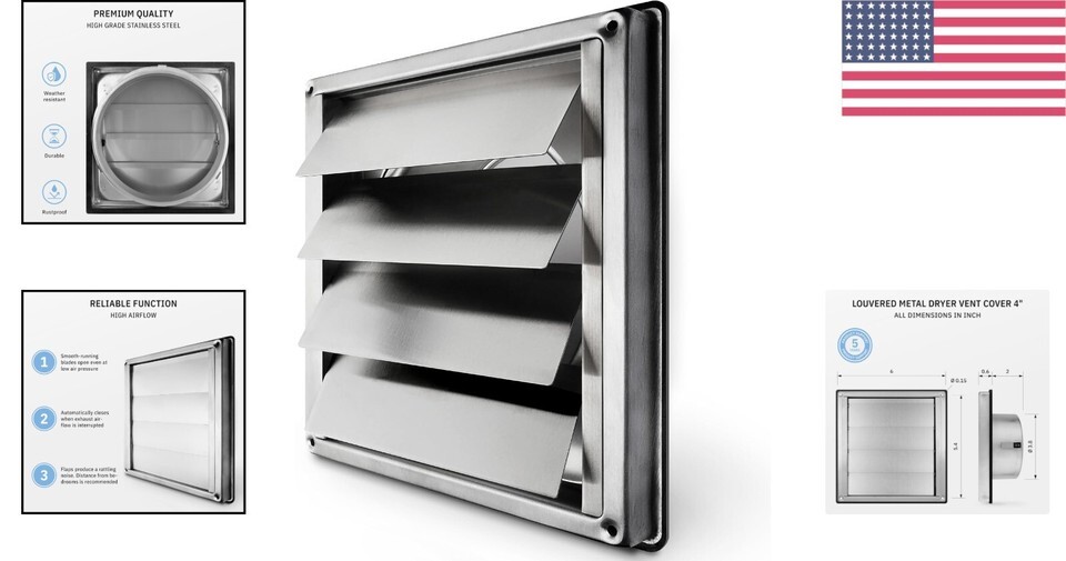 Don?t compromise on quality or comfort. Order the 4-Inch Stainless Steel Dryer Vent Cover now and elevate your home ventilation experience!