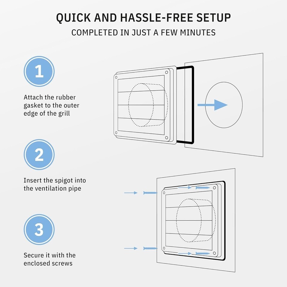Simple Installation: Effortlessly install this stainless steel exhaust vent by inserting it into the ventilation duct. The provided silicone gasket offers a tight seal against the wall, further enhancing its durability.