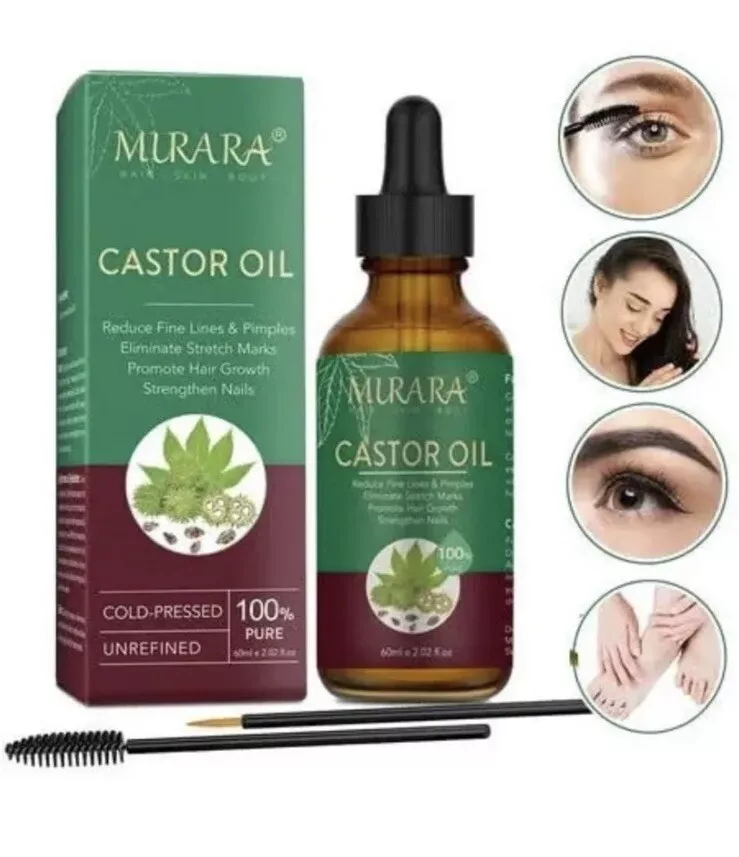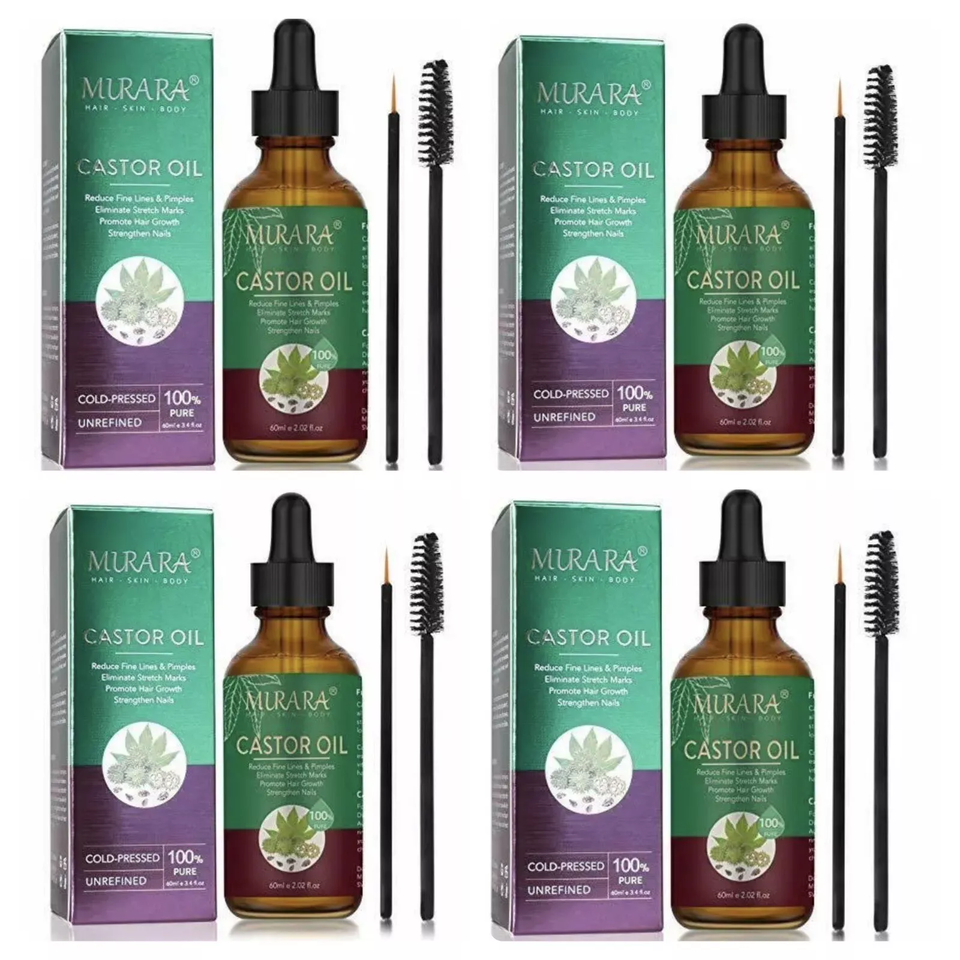 4 Murara Pure Cold Pressed Unrefined Castor Oil For Hair, Skin, Eyelashes 3.4oz