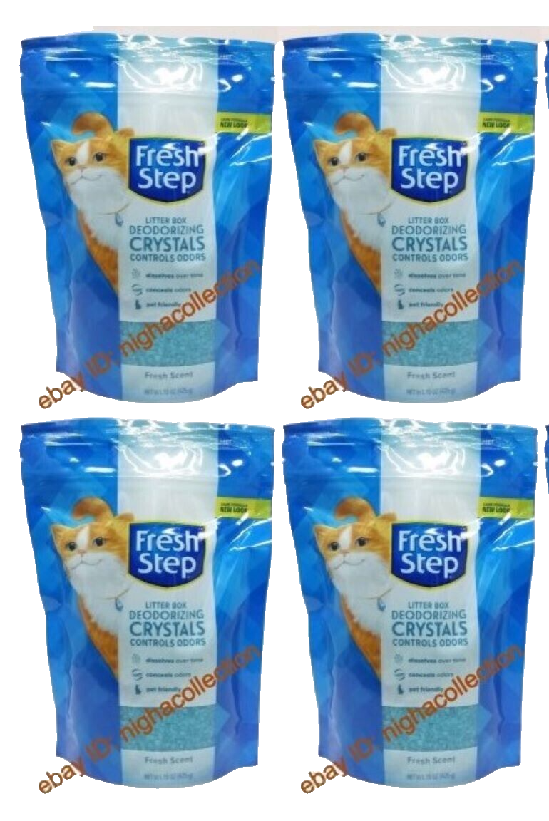 - 4 PACK Litter Box Deodorizing Crystals Scent Fresh Step 15oz (60 oz Total) Cat