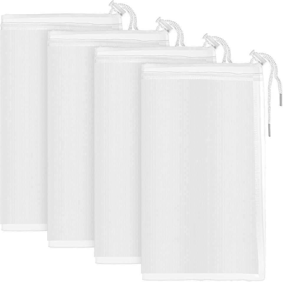 4 Pack - 10x6 Inch 200 Micron - Aquarium Nylon Media Filter Bags - Rectangle Drawstring Reusable, for Activated Carbon/ Balls - White