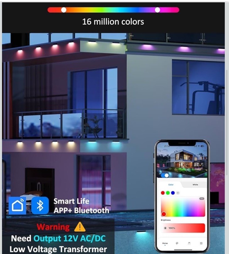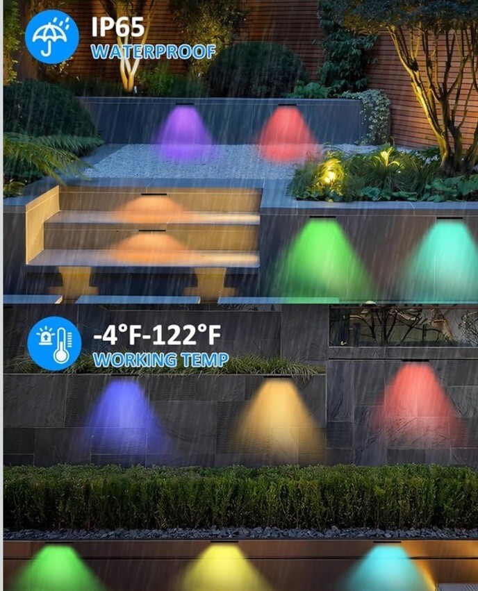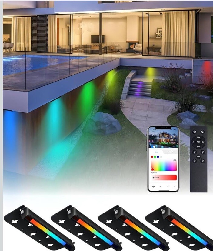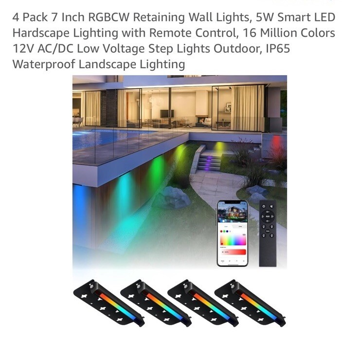 - 4 Pack 7 Inch RGBCW Retaining Wall Lights, 5W Smart LED Hardscape Lighting wi...