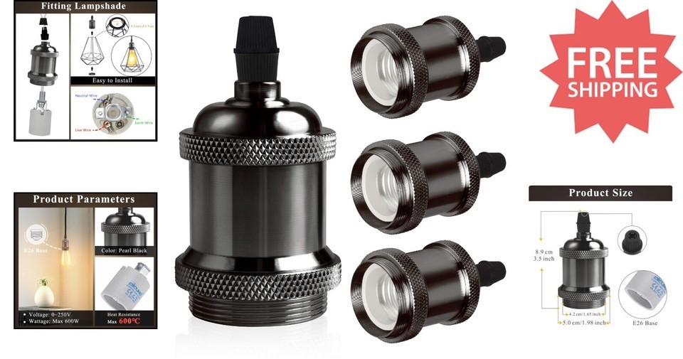 4-Pack E26 Vintage Lamp Socket Replacement: Antique Retro Edison Light Holders ? ? ? ? ? ? ? ? ? ? ? ? ? ? ? ? ? ? ? ? Enhance your space with the DiCUNO E26 vintage socket, featuring an antique and industrial style perfect for DIY pendant lighting projects. Compatible with E26 medium base bulbs, especially vintage Edison bulbs, it creates a charming, classical ambiance. Crafted with high-quality aluminum and ceramic, it offers durability, heat resistance up to 600C, and a secure fit. Easy to install and customizable with lampshades, it?s ideal for retro and ornamental lighting. Backed by a 3- refund policy and a 1- , supported by prompt customer service for a seamless experience. To ensure fast and reliable delivery, we work with multiple fulfillment partners and suppliers. Depending on availability and location, your order may ship from different warehouses or arrive in packaging that varies from item to item. Tracking details are typically provided shortly after shipment, and customer satisfaction remains our top priority. Shipping Free Fast Shipping - We offer free shipping to most of the USA with a normal delivery time of 3-7 days. However, due to the current situation, additional delivery time (up to 3 weeks) may be required for some items. Alternative Carriers - We may use alternative carriers (e.g. USPS, FedEx, UPS, etc.) to ensure your package arrives safely and on time. Due to the use of multiple carriers, we are unable to provide a tracking number automatically. Handling Time - Orders are processed and shipped within 1-2 business days of receiving cleared payment. Shipping Restrictions - Shipping to Alaska, Hawaii, Puerto Rico, Guam, and other US territories may incur shipping charges or delivery restrictions. Please contact us before ordering, or your order can be refunded/cancelled. State Restrictions - There may be restrictions based on your state of purchase. For example, certain items may not be shipped to California due to state regulations. Contact for Tracking Updates - If you require tracking updates or have any concerns about the delivery of your order, please feel free to contact us, and we will be happy to assist you. Return 30-Day Hassle-Free Returns - We want you to be completely satisfied with your purchase. If you are not, you can return the item within 30 days of receiving it for a full refund or exchange. Easy Return Process - To start a return, simply contact us and we will provide you with a prepaid return shipping label and detailed instructions. Restocking Fee - There are no restocking fees for returns. However, the buyer is responsible for return shipping costs if the return is not due to a seller's error. Refund Processing Time - Refunds will be processed within 5 business days of receiving the returned item in its condition. Payment We accept all major credit cards, PayPal, and Apple Pay for your convenience. Your payment information is secure and encrypted to ensure a safe and seamless transaction. Please complete your payment within 3 days of purchase to avoid any delays in shipping. Feedback Your feedback is extremely important to us. We strive to provide the best products and customer service possible. If you are satisfied with your purchase, please take a moment to leave us a positive review. If you have any concerns or issues with your order, please contact us before leaving negative feedback. We are committed to resolving any problems and ensuring your satisfaction. Contact Us If you have any questions or concerns, please feel free to out to our customer support team. You can contact us through the messaging system. We are available Monday to Friday, 9:00 am to 5:00 pm EST, and we will do our best to respond to your inquiry within 24 hours. Buy it now and enjoy a pleasant shopping experience! Unit Quantity: 4 Material: Ceramic,Aluminum Compatible Product: Ceiling Light Bracket Department: Unisex Adults Features: Easy Installation,Heat Resistant,Sturdy,High Quality Compatible Model: For E26 Medium Base Bulbs Type: Lamp Base Number in Pack: 4 Color: Pearl Black Bulb Shape Code: E26 Style: Vintage Lighting Technology: Incandescent Connectors: Screw Item Diameter: 1.98 in Amperage: 5 A Power Source: Corded Power: 60 W Current Type: AC Output Voltage: 120 V Voltage: 120 V Item Weight: 0.95 lb Unit Type: oz