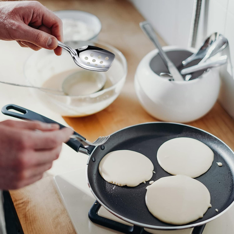 - 4 Pack Large Serving Spoons Flat Bottom Cooking Slotted Spoon Stainless Steel fo