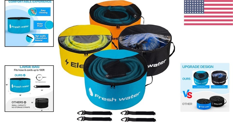 - 4-Pack Waterproof RV Hose & Electrical Cord Storage Bags with Zippered Closure