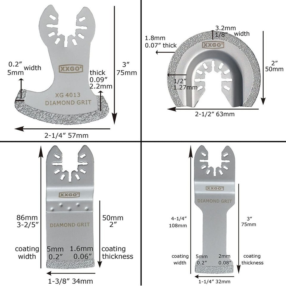 4 Pcs Silver Diamond Blades for Oscillating Tools