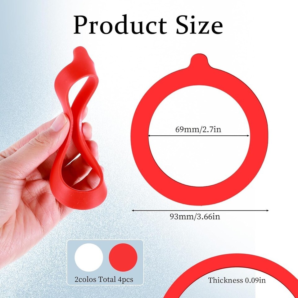 Universal Size: Each gasket has an outer diameter of 93mm (3.66 inches) and an inner diameter of 69mm (2.7 inches), compatible with most standard mason jar lids.