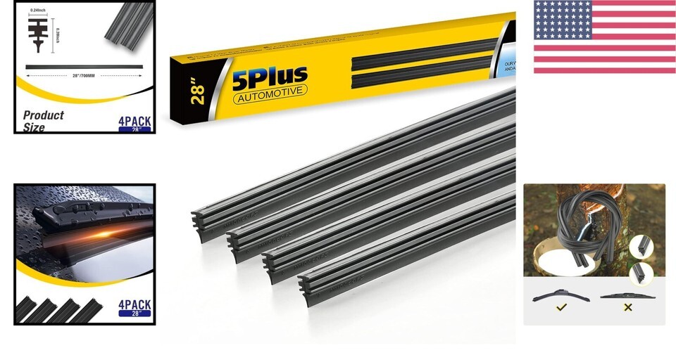 4 Piece 28-Inch Adjustable Wiper Blade Refill - PTFE Coated for Quiet Efficiency ? ? ? ? ? ? ? ? ? ? ? ? ? ? ? ? ? ? ? ? 4 Piece 28-Inch Adjustable Wiper Blade Refill -PTFE Coated for Quiet Efficiency Key Features: Includes four 28-inch wiper replacement strips. Made from AAAA Grade natural rubber, ensuring superior performance. PTFE coated for optimal durability and to provide a quiet, clean wipe without leaving traces. Designed specifically for boneless wipers; not compatible with iron wipers. Quick and easy installation takes just 5 minutes. Benefits: Upgrade your vehicle's wiper system with high-quality replacement strips. Experience quieter and more efficient windshield clearing for enhanced safety. Keep your glass pristine with a clean and thorough wipe. Swift installation ensures you?re back on the road in no time. Why Choose Our Wiper Blade Refill? Invest in your driving comfort and safety with our 4 Piece 28-Inch Adjustable Wiper Blade Refill. Crafted from AAAA Grade natural rubber and PTFE coated, these replacement strips deliver unparalleled efficiency and quiet operation. Their design ensures a perfect fit for boneless wipers, making it essential for maintaining optimal visibility in adverse weather conditions. Upgrade your windshield wipers today for a smoother, safer driving experience - order now! Shipping Free Fast Shipping - We offer free shipping to most of the USA with a normal delivery time of 3-7 days. However, due to the current situation, additional delivery time (up to 3 weeks) may be required for some items. Alternative Carriers - We may use alternative carriers (e.g. USPS, FedEx, UPS, etc.) to ensure your package arrives safely and on time. Due to the use of multiple carriers, we are unable to provide a tracking number automatically. Handling Time - Orders are processed and shipped within 1-2 business days of receiving cleared payment. Shipping Restrictions - Shipping to Alaska, Hawaii, Puerto Rico, Guam, and other US territories may incur shipping charges or delivery restrictions. Please contact us before ordering, or your order can be refunded/cancelled. State Restrictions - There may be restrictions based on your state of purchase. For example, certain items may not be shipped to California due to state regulations. Contact for Tracking Updates - If you require tracking updates or have any concerns about the delivery of your order, please feel free to contact us, and we will be happy to assist you. Return 30-Day Hassle-Free Returns - We want you to be completely satisfied with your purchase. If you are not, you can return the item within 30 days of receiving it for a full refund or exchange. Easy Return Process - To start a return, simply contact us and we will provide you with a prepaid return shipping label and detailed instructions. Restocking Fee - There are no restocking fees for returns. However, the buyer is responsible for return shipping costs if the return is not due to a seller's error. Refund Processing Time - Refunds will be processed within 5 business days of receiving the returned item in its condition. Payment We accept all major credit cards, PayPal, and Apple Pay for your convenience. Your payment information is secure and encrypted to ensure a safe and seamless transaction. Please complete your payment within 3 days of purchase to avoid any delays in shipping. Feedback Your feedback is extremely important to us. We strive to provide the best products and customer service possible. If you are satisfied with your purchase, please take a moment to leave us a positive review. If you have any concerns or issues with your order, please contact us before leaving negative feedback. We are committed to resolving any problems and ensuring your satisfaction. Contact Us If you have any questions or concerns, please feel free to out to our customer support team. You can contact us through the messaging system. We are available Monday to Friday, 9:00 am to 5:00 pm EST, and we will do our best to respond to your inquiry within 24 hours. Buy it now and enjoy a pleasant shopping experience! Model: Wiper Blade Refill Position: Windshield Placement on Vehicle: Front,Rear Features: Easy Installation,PTFE coated,quiet,clean,no trace Items Included: Wiper Blade Refill Attachment Type: Clip Type: Wiper Blade Refill Number of Pieces: 4 Size: 28 in Compatible Wiper Arm: Pinch Tab Arm