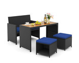- 4 Piece Outdoor Dining Set with Wood Topped Dining Table Rattan Loveseat Chair