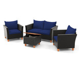 4 Pieces Outdoor Conversation Set with Storage Coffee Table-Navy - Color: Navy