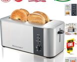 Introducing the sleek, long-slot stainless steel toaster, the epitome of sophistication and functionality. This appliance is a perfect fit for families, accommodating extra wide and tall specialty breads, making breakfast a delightful experience.