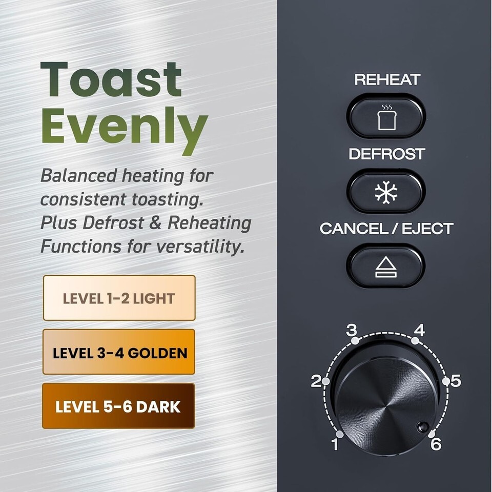 Your Ultimate Breakfast Companion: Stylish Steel Toaster with Reheat Defrost Functions