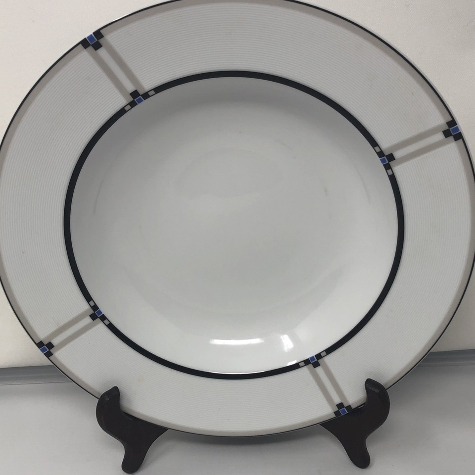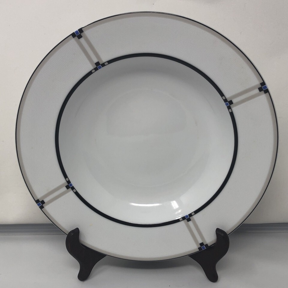 4 Studio Nova Exhibition Soup Bowls Wide Rimmed Black Blue Taupe Ribs WhiteY0290