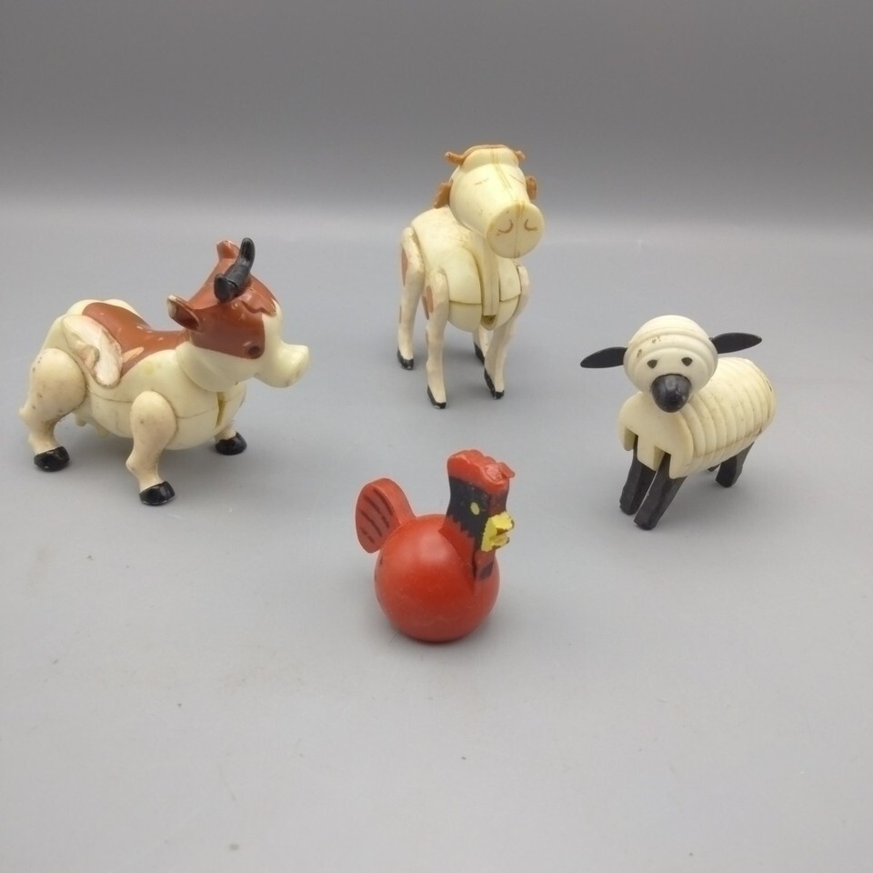 4 Vintage Fisher Price Little People Lot Farm Animals Chicken Rooster Cow Sheep