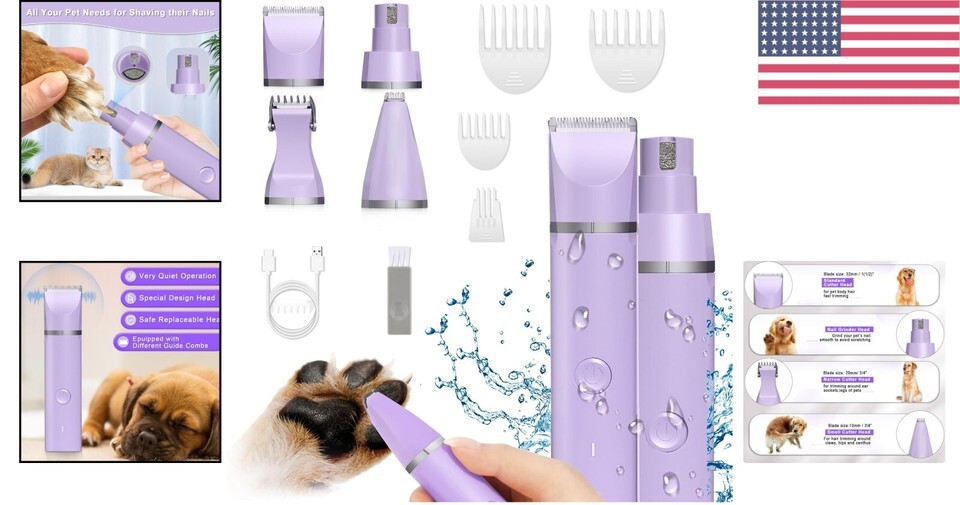 - 4-in-1 Cordless Dog Grooming Kit - Effortless Grooming for Small to Medium Pets