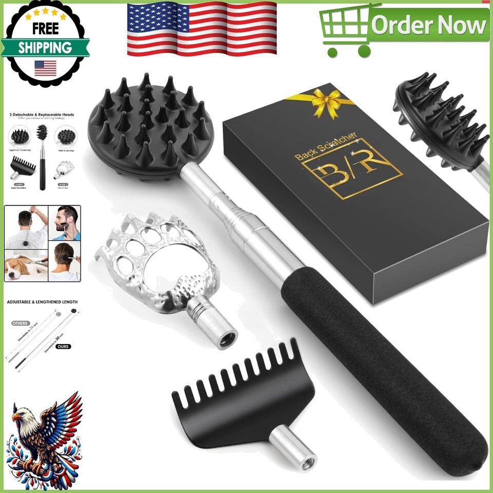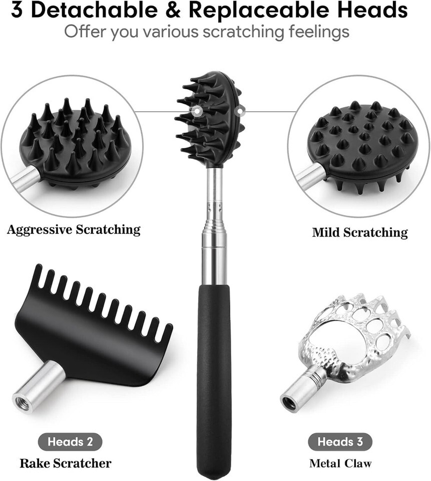 4-IN-1 Design: Comes with 4 large detachable back scratcher heads, including a unique dual-side scratching spike, claw, and rake. Perfect for a variety of scratching experiences on your back, neck, head, or even beard.