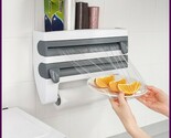 ? 4-in-1 Wall Mounted Kitchen Wrap Organizer ? Cling Film, Foil Towel Dispenser with Dual Cutters ? Durable ABS, Space-Saving Grey Unit (391024cm)