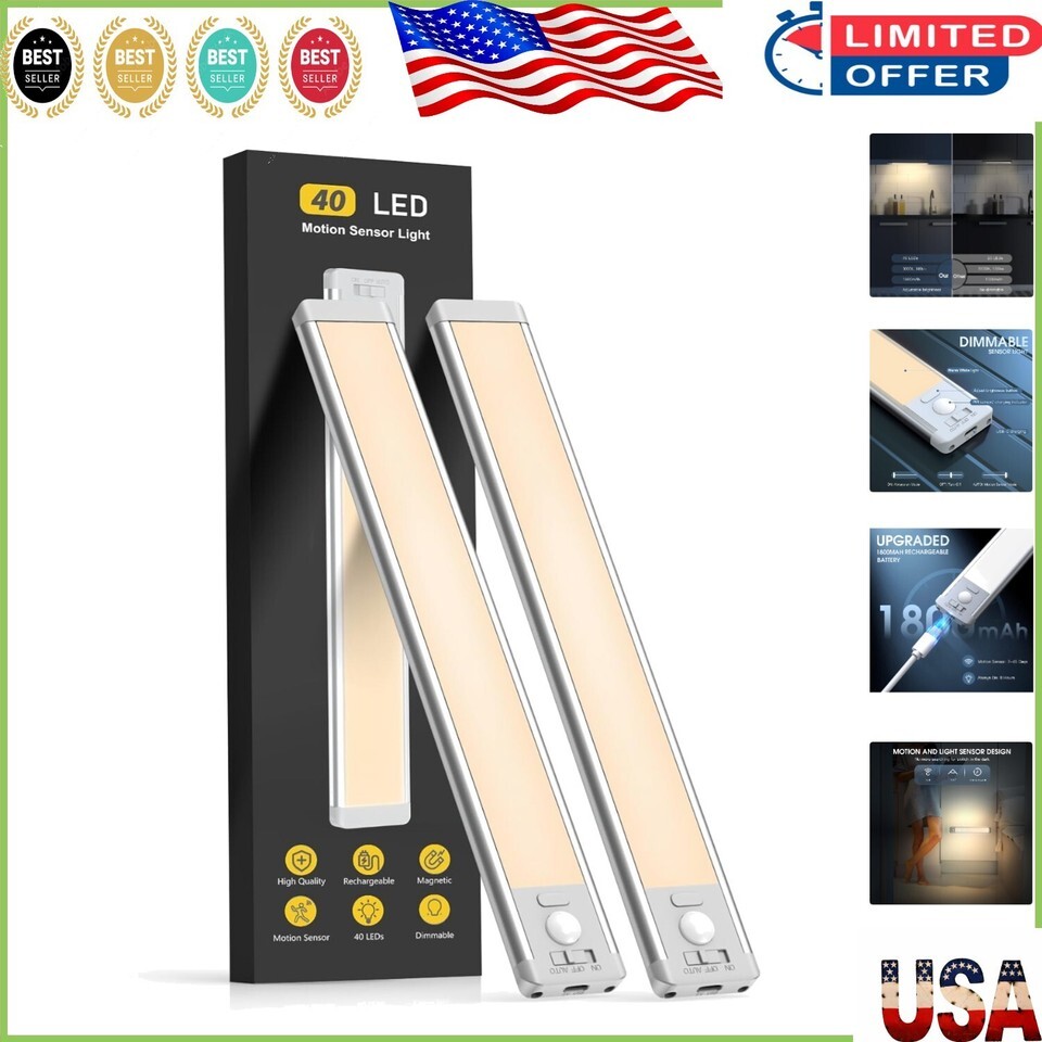 40 LED Rechargeable Motion Sensor Under Cabinet Lights - 2 Pack