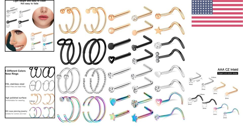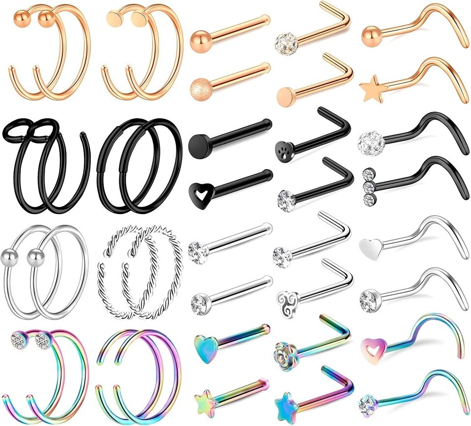 Whether you're looking to add a hint of glamour to your style or searching for the ideal gift, this 40-piece nose ring set combines sophistication with exceptional quality. Make a statement in both everyday and special occasions with this gorgeous jewelry collection.