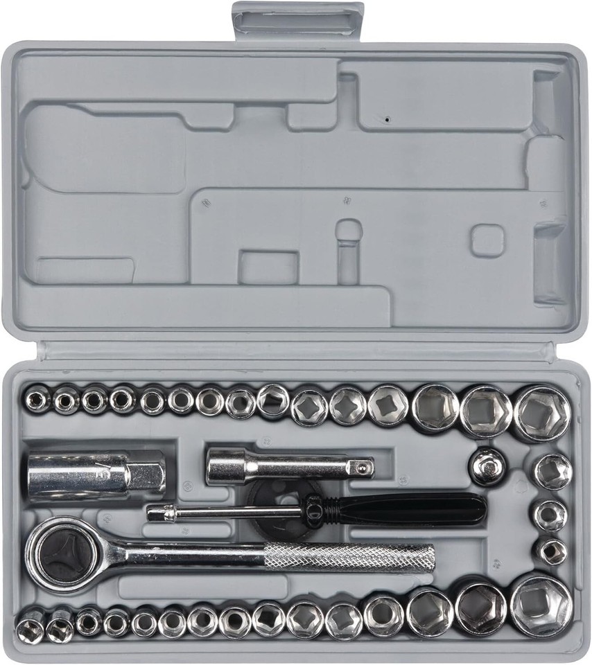 Elevate your toolbox with our 40-Piece SAE/Metric Socket Set, crafted for durability and versatility to meet the demands of any professional mechanic. Whether you're tightening bolts, removing spark plugs, or embarking on a full engine rebuild, this set is your go-to companion. With an extensive selection of sizes and a sturdy storage case, you'll appreciate the convenience and efficiency of organization. Invest in this socket set and experience the professional-grade results that will keep you working confidently for to come.