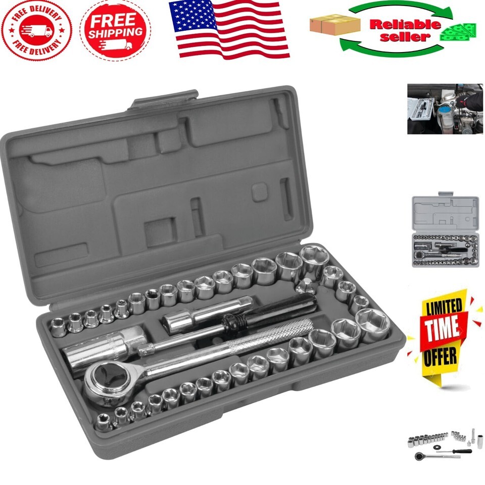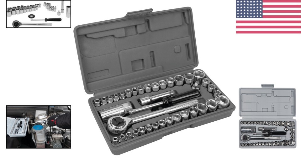 - 40-Piece SAE/Metric Socket Set - Durable Chrome Vanadium for Mechanics