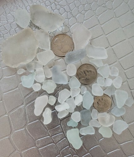 This Sale is for One (1) Lot of Genuine Lake Erie Beach Glass Surf Tumbled Assorted Shades Forty (40+) pieces (different sizes) Lake Erie Beach Glass is ideal for creating jewelry and other crafts Some pieces are approximately the size of a nickel/quarter ~ which are great for wire wrapping as necklace pendants Others are dime size, which are typically used for wire wrapped earrings and charms The beach glass we find can be as old as the late 1800's and early 1900's when common practice was to dump trash into the lakes I have found deep red glass from 1930 that is likely a bottom from an apothecary bottle Red and orange colored glass was used as a warning that something dangerous was inside Some of the deep blue glass contained other medicines Purple pieces started out as white glass that contained manganese, and with exposure to the UV rays of the sun began to turn a light purple shade. You can place these pieces in direct sunlight, and their purple hue will deepen over time I have created mosaic treasures on top of an old piano bench ~ several tables and a back splash for my kitchen at our camp Please view photos for a good description of these pieces Thank you!