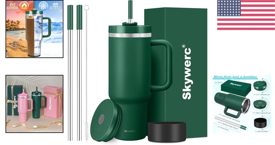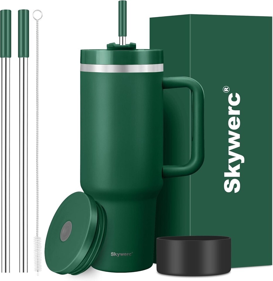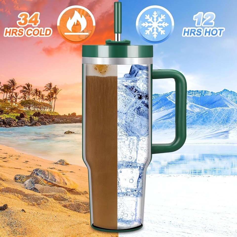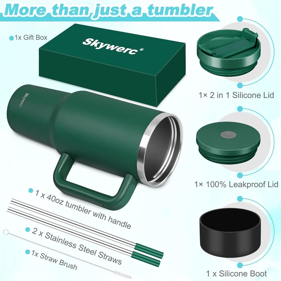 - 40 oz Insulated Tumbler with Handle & Straws - Leakproof & Travel Friendly