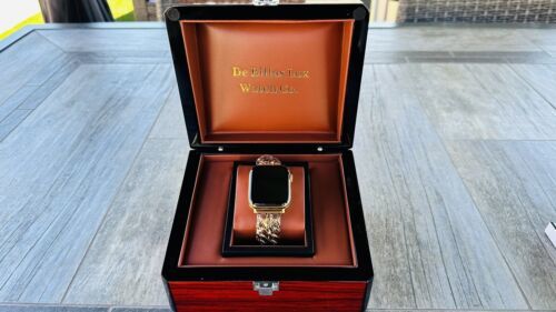 Original Apple Watch Series 9 stainless steel customized and professionally gold plated by De Billas with an industrial grade of authentic 24 Karat Gold.