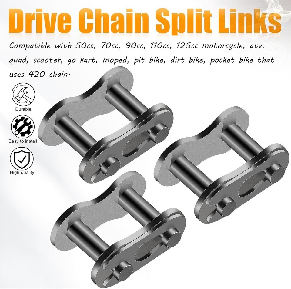 420 Drive Chain Master Link Split Connector, 3-Pack ? Repair Split Links for 50cc-125cc ATV, Go Kart, Scooter, Moped, Pit/Dirt/Pocket Bikes ? Fits XR/CRF and Most Chinese Models