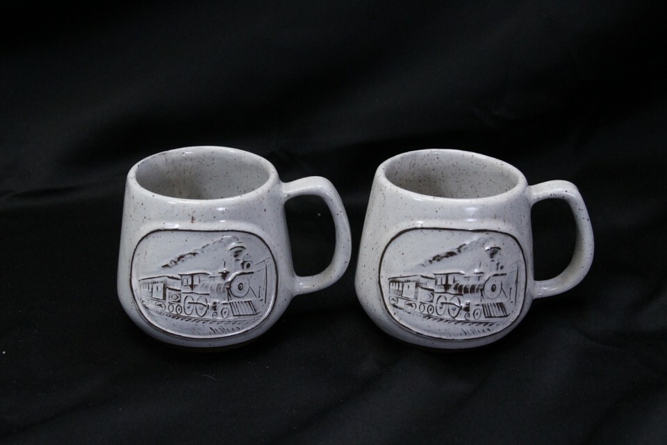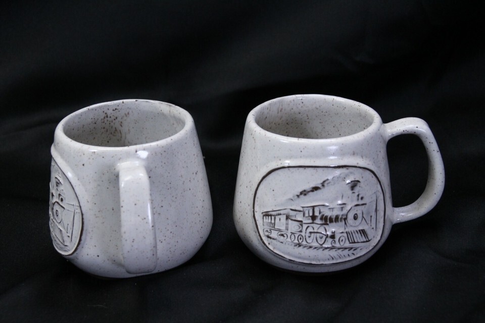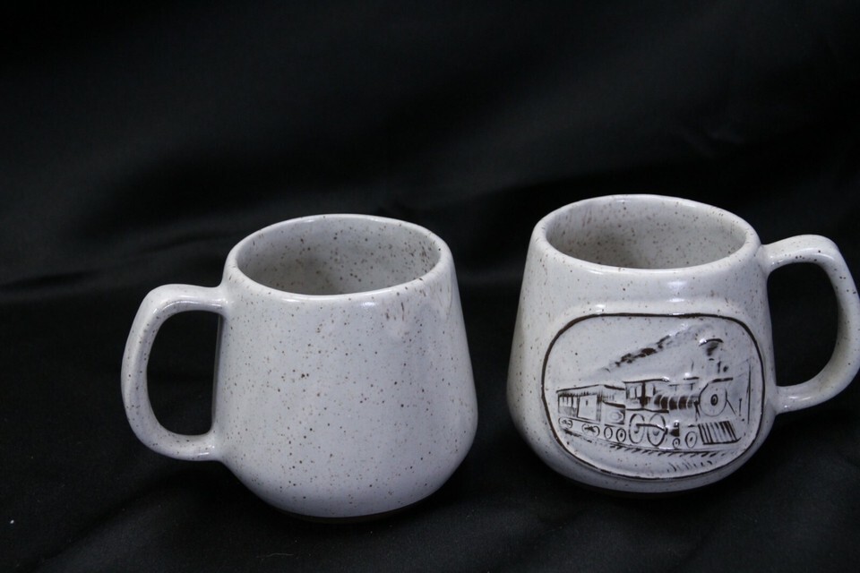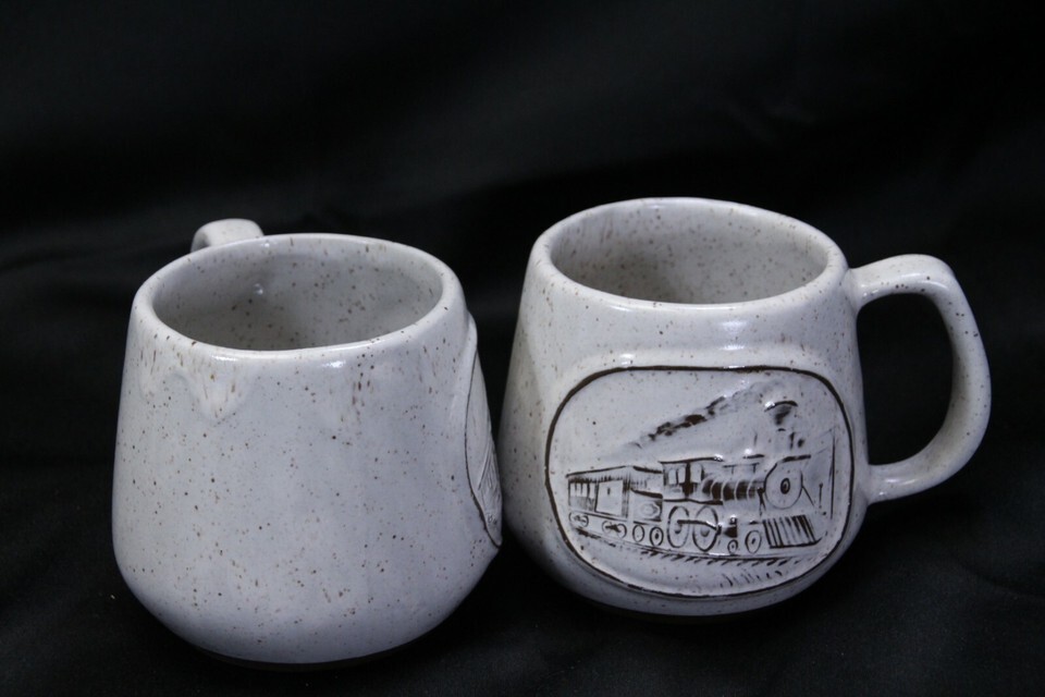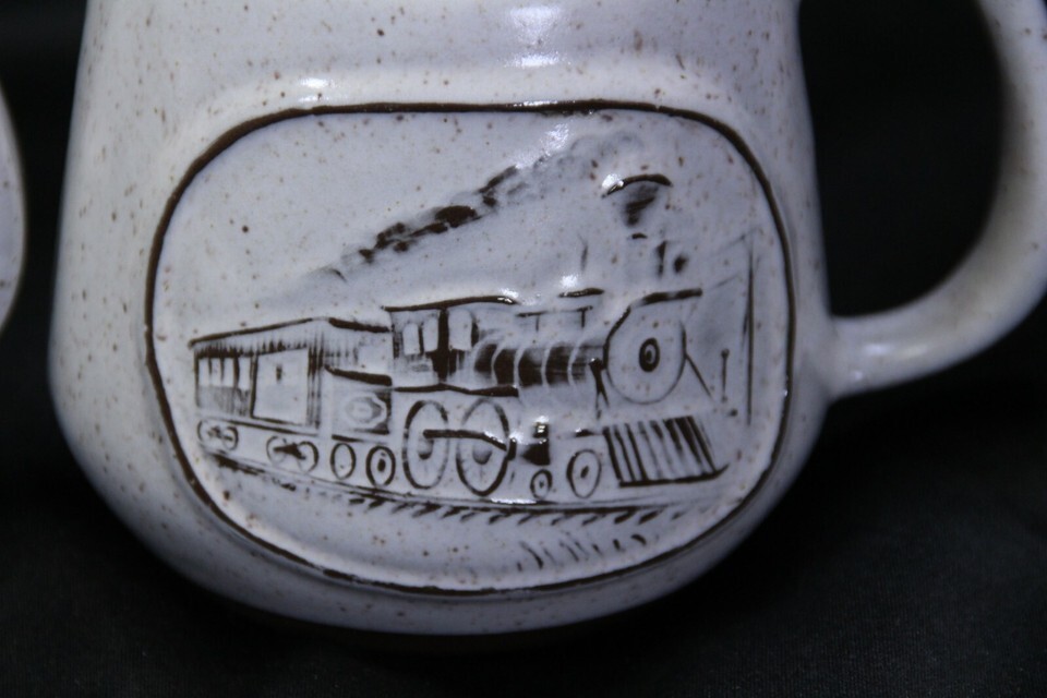 440 Steam Locomotive Coffee Mug Engine Train Onion River Pottery Winooski VT 6pc