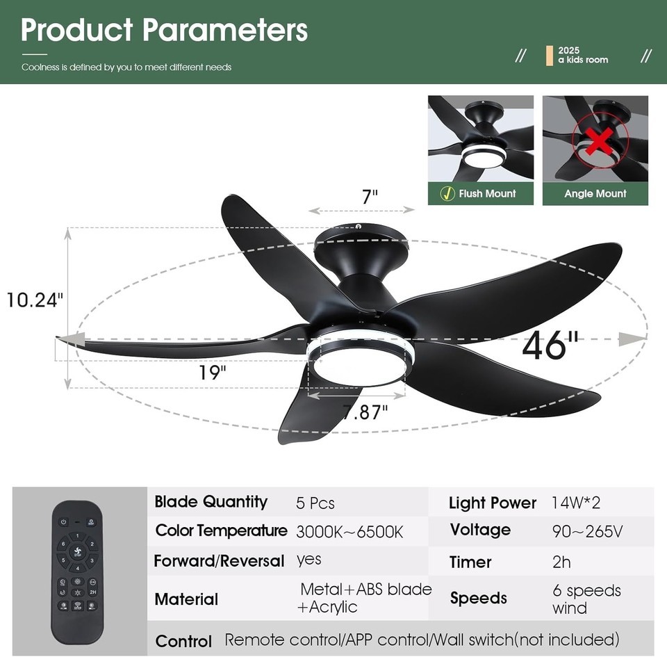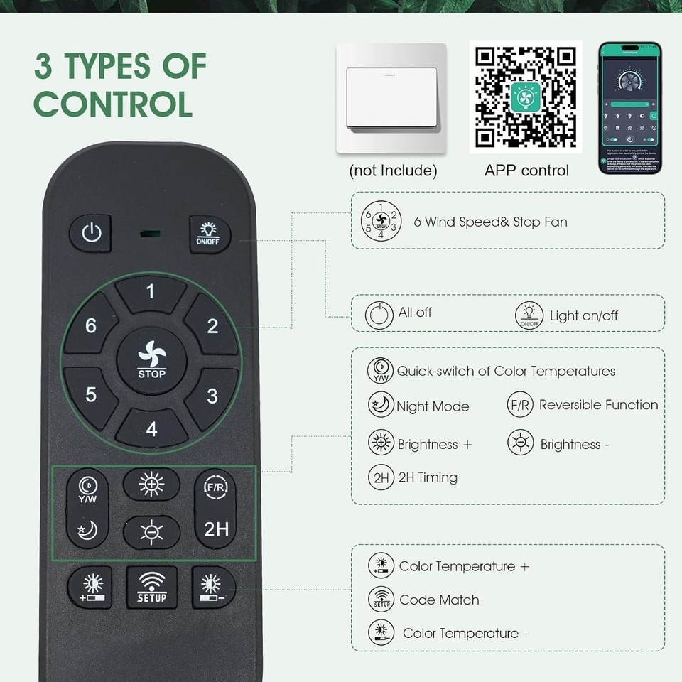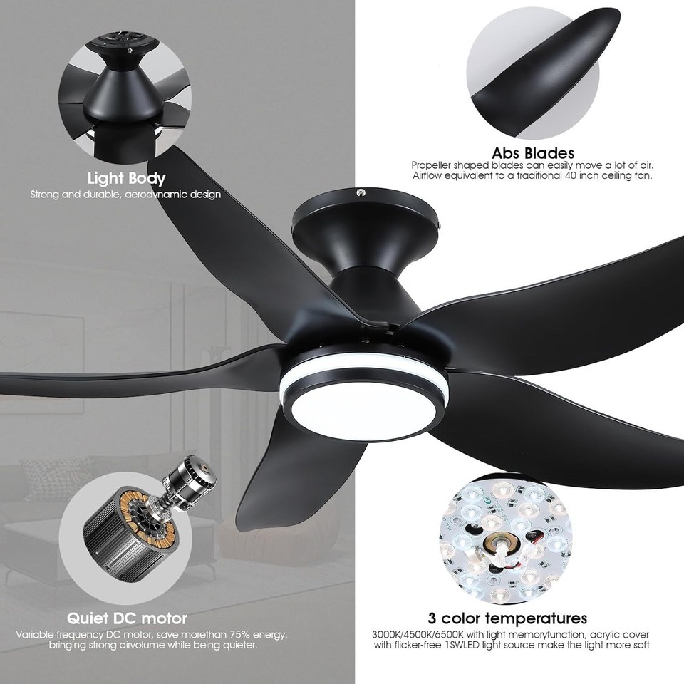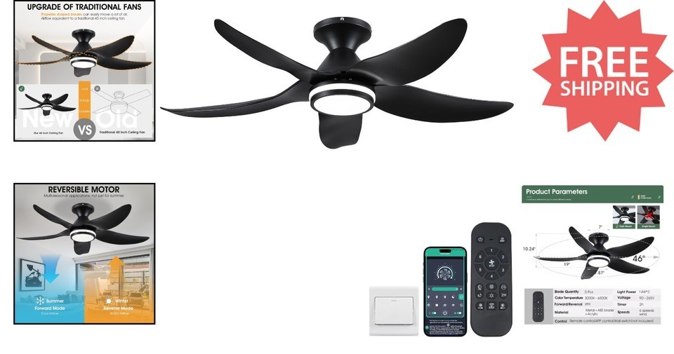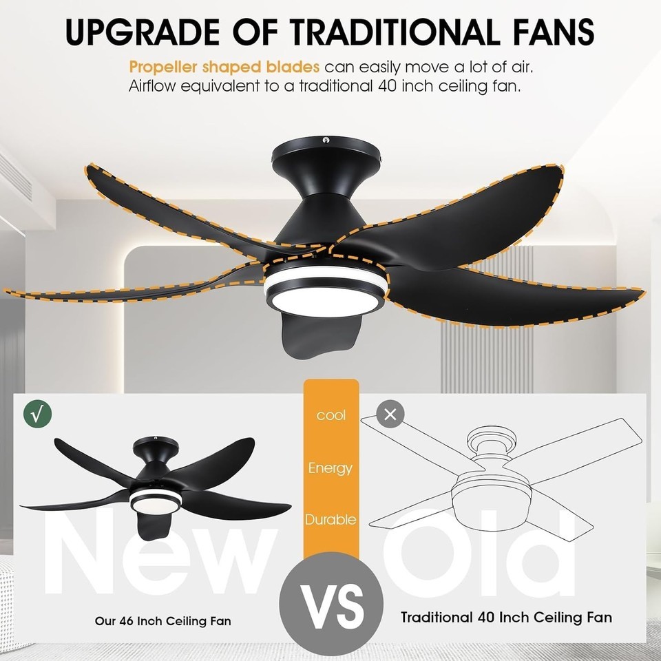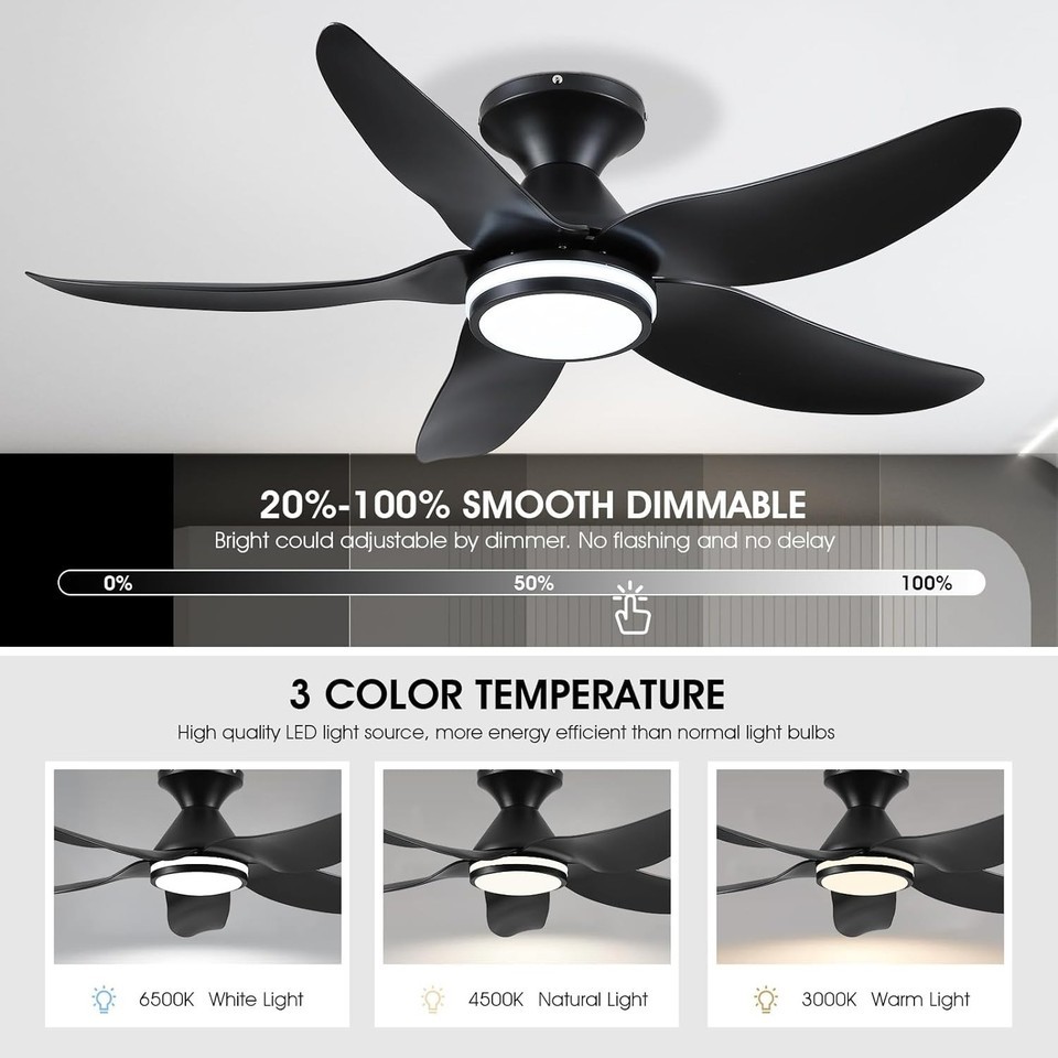 - 46-Inch Dimmable Ceiling Fan with Quiet Operation & 6 Speeds - Perfect for Home