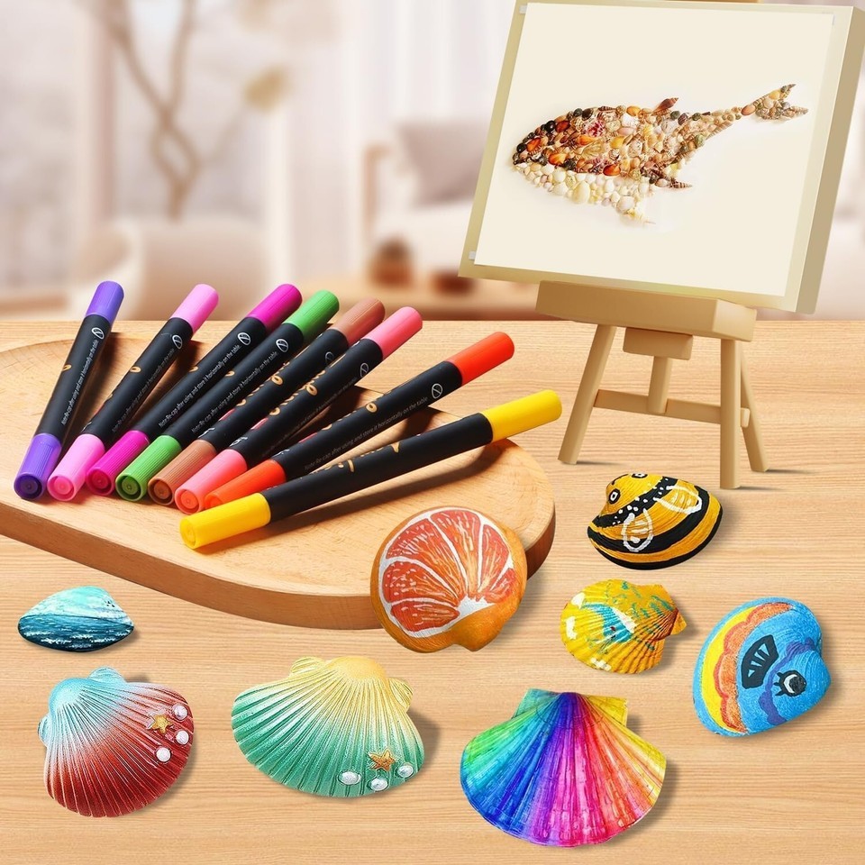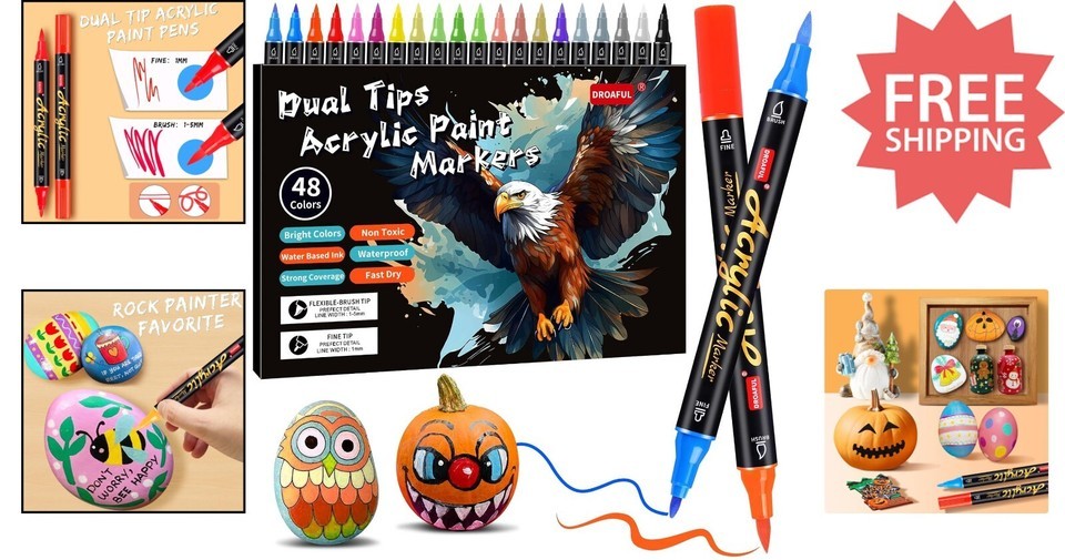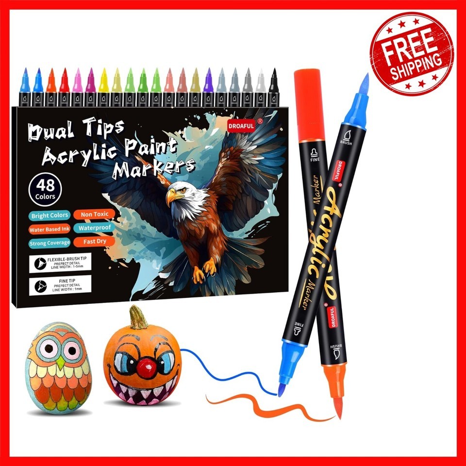 Discover the versatile Droaful Dual Tip Acrylic Paint Pens, perfect for artists of all levels. Each pen features a 1-5mm brush tip and a precise 1mm fine tip, ideal for detailed work or broad strokes on virtually any surface, from glass and ceramics to fabric and wood. Upgraded with high-quality, quick-drying, and vibrant ink, these markers deliver smooth, long-lasting color without leakage or shaking required. With 48 rich hues, they open endless creative possibilities, making them suitable for crafts, DIY projects, and art embellishments. Safe, non-toxic, and odorless, they are perfect for children and adults alike. An excellent gift choice for any occasion, inspiring creativity and artistic expression.