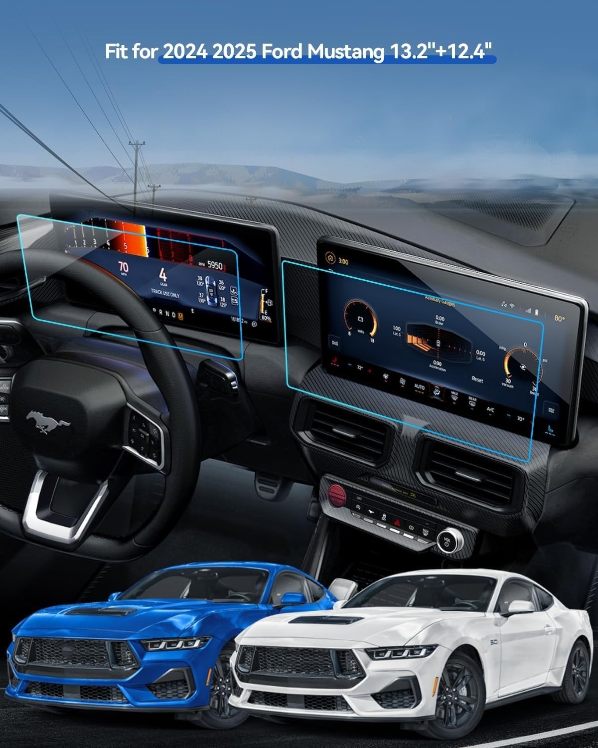 Confirm your screen size with Picture 2 before buying. LANTU Nano plastic Screen protector is designed for 13.2"+12.4'' 2024 2025 Ford Mustang EcoBoost/GT Screens. Enjoy seamless, edge-to-edge coverage without any impact on functionality. We assure quality and take responsibility for any issues
